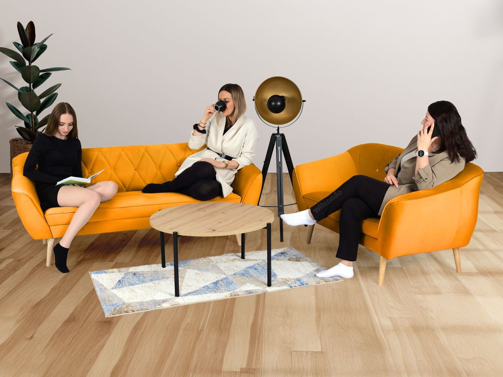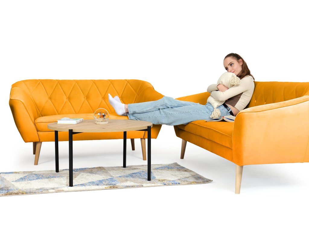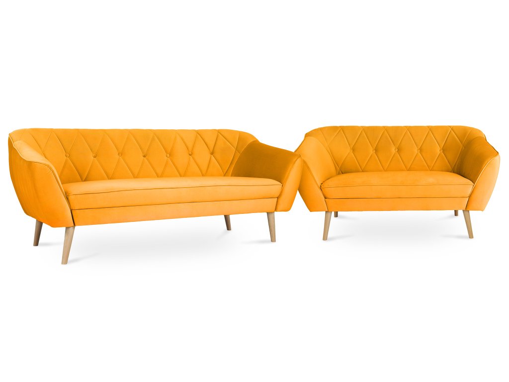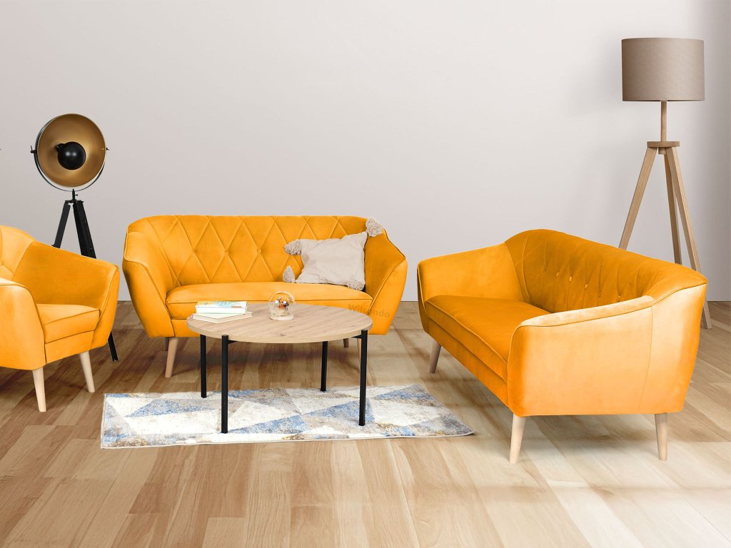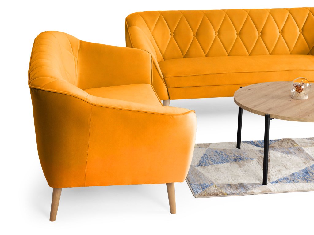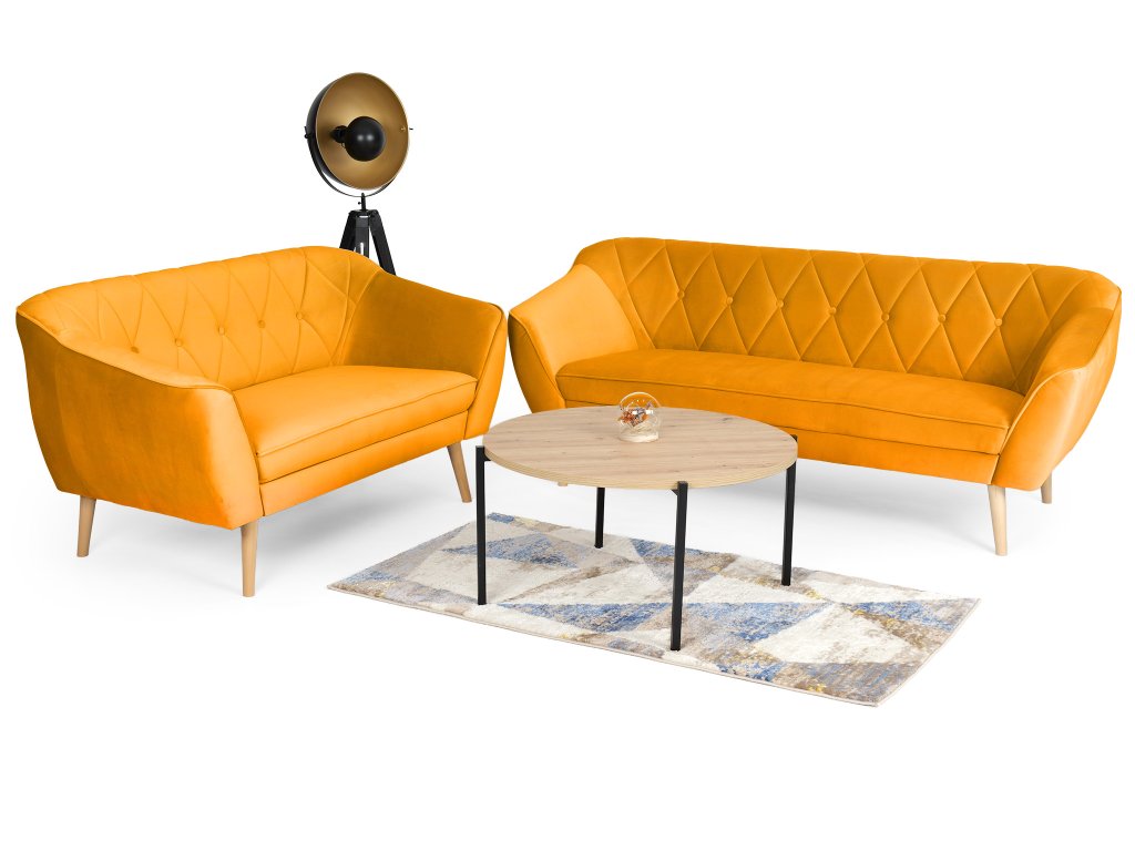 Amennyiben egy ragyogóan gyönyörű ülőgarnitúrára vágyik, akkor biztosan nem fog csalódni a narancssárga színű DEANA 3+2 kanapé szettben. Ez a garnitúra egy kétszemélyes és egy háromszemélyes kanapéból áll. Ezzel a két kanapéval egy gyönyörű, modern, skandináv stílusú otthont varázsolhat majának. Mindkét kanapét úgy tervezték, hogy ne csak a külalakjuk legyen nem mindennapi, de különleges kényelmet is garantáljanak. A kanapék küllemét csinosítja a háttámla elegáns steppelése, mely T25 habbal van kitöltve. Az ülőrészt T30 hab alkotja, amely biztosítja a problémamentes, hosszú és főleg kényelmes használatát. A profilozott háttámlák és kartámlák tökéletes ergonómiai kényelmet biztosítanak. Ez a szett tökéletes választás lehet a nappaliba, de akár szépségszalonokba, éttermekbe, kávézókba is megfelelő lehet. A kanapék natúr színű tömör fa lábakon állnak.