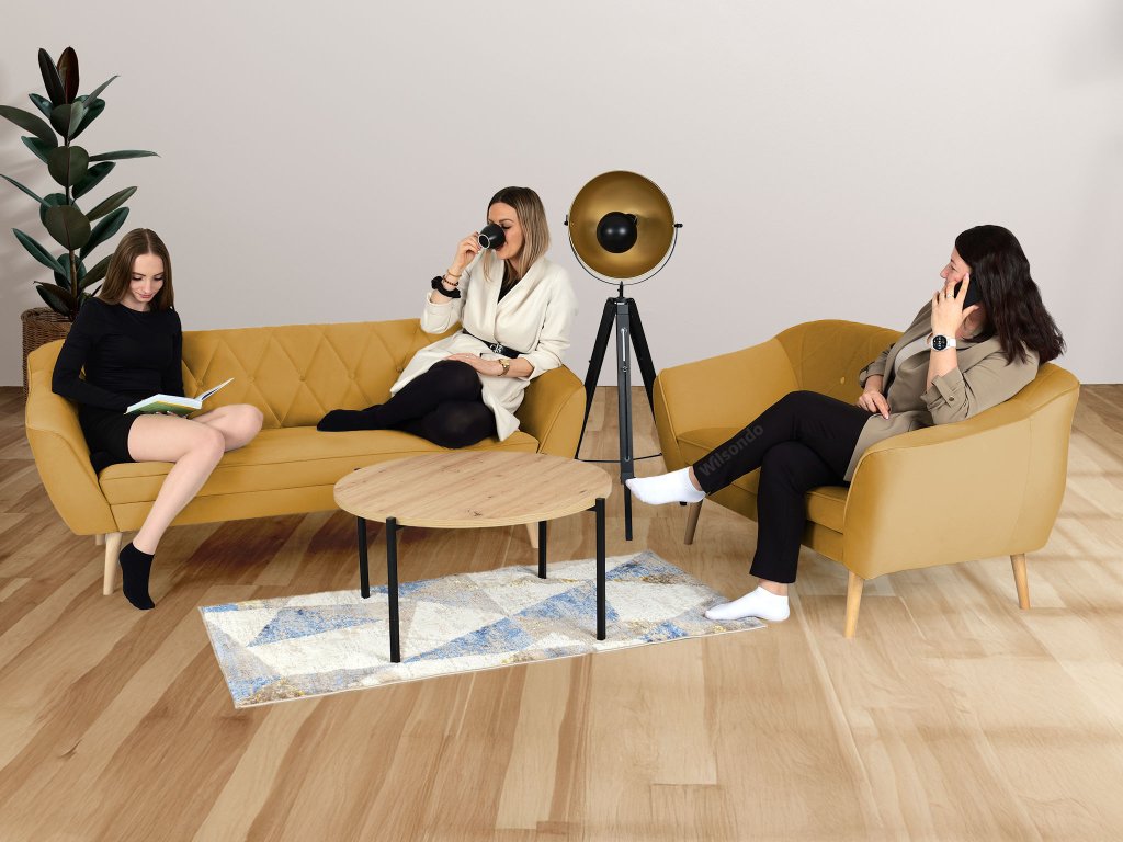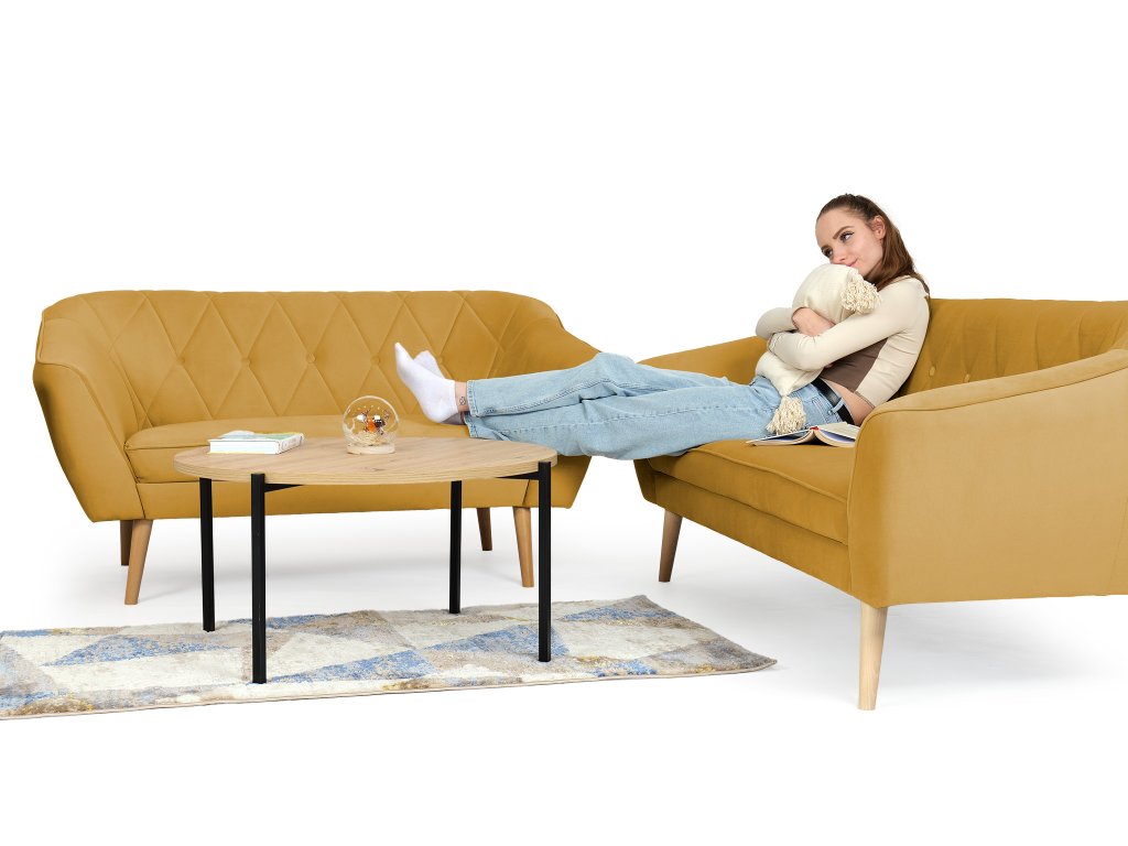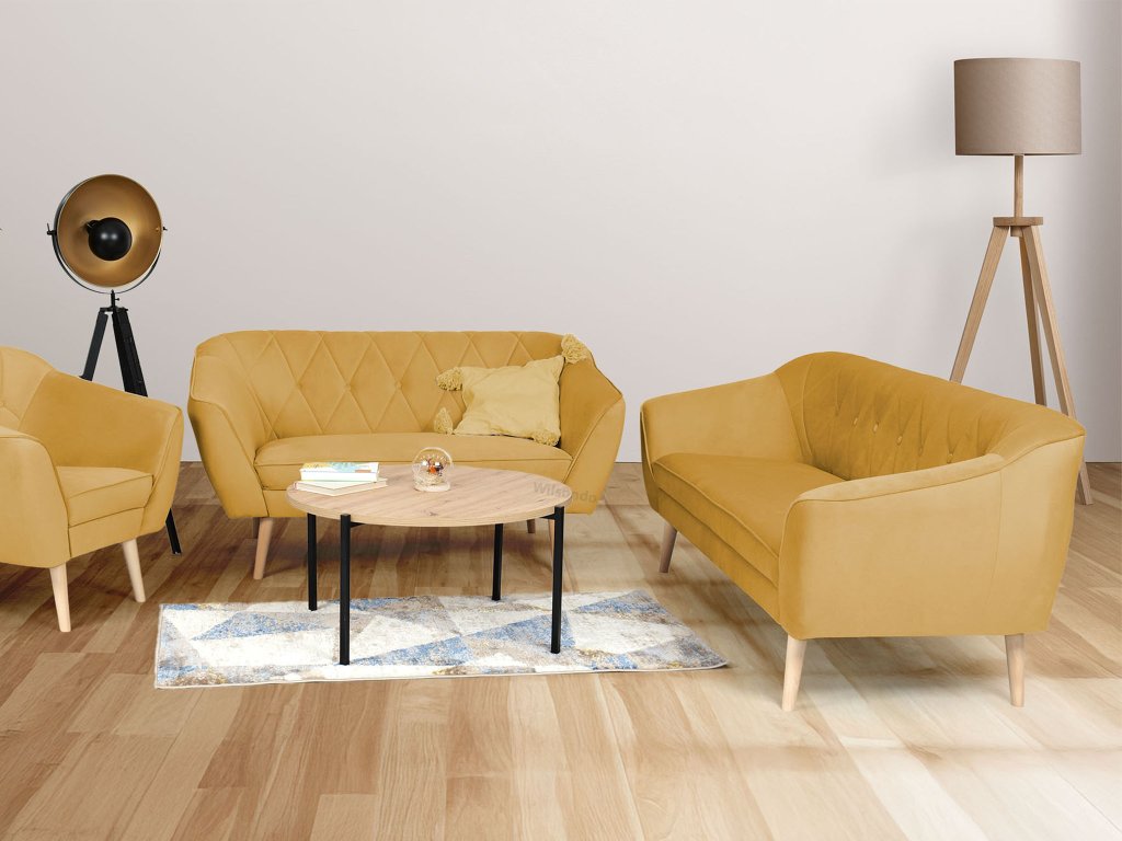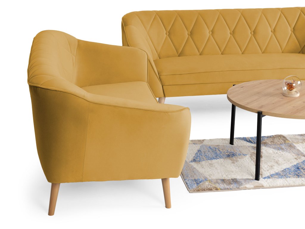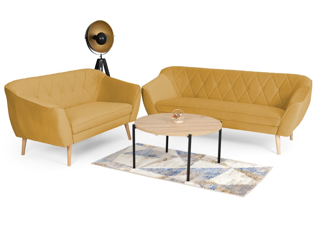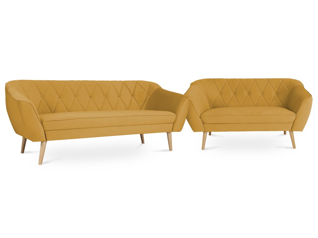 Ez a ragyogóan gyönyörű sárga ülőgarnitúra szett beragyogja majd otthonát. Rendezze be nappaliját stílusosan a sárga színű DEANA 3+2 kanapé szett segítségével. Ez a garnitúra egy kétszemélyes és egy háromszemélyes kanapéból áll. Ezzel a két kanapéval egy gyönyörű, modern, skandináv stílusú otthont varázsolhat majának. Mindkét kanapét úgy tervezték, hogy ne csak a külalakjuk legyen nem mindennapi, de különleges kényelmet is garantáljanak. A kanapék küllemét csinosítja a háttámla elegáns steppelése, mely T25 habbal van kitöltve. Az ülőrészt T30 hab alkotja, amely biztosítja a problémamentes, hosszú és főleg kényelmes használatát. A profilozott háttámlák és kartámlák tökéletes ergonómiai kényelmet biztosítanak. Ez a szett tökéletes választás lehet a nappaliba, de akár szépségszalonokba, éttermekbe, kávézókba is megfelelő lehet. A kanapék natúr színű tömör fa lábakon állnak.