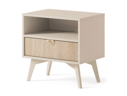 Egy nyitott polccal és fiókkal is rendelkező Forest éjjeliszekrény bézs színben
