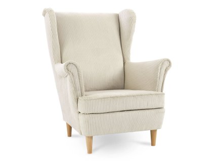 Krémszínű füles fotel modern kordbársony szövettel kárpitozva