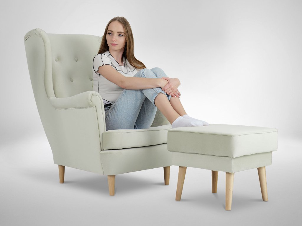 DEANA füles fotel lábtartóval - krémszínű