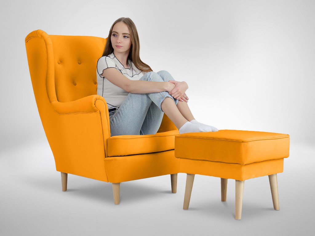 A narancssárga Deana lábtartó tökéletes kiegészítő az ülőgarnitúrákhoz, a kanapékhoz és lábtartóként is használható a füles fotelhez. A puffnak köszönhetően kényelmesen el tud helyezkedni és a lábát is fel tudja tenni. A taburett lábtartó minőségi anyagokból készül. Ez a szett ideális választás minden szobába, legyen szó a nappaliról, a hálószobáról vagy az olvasósarokról.