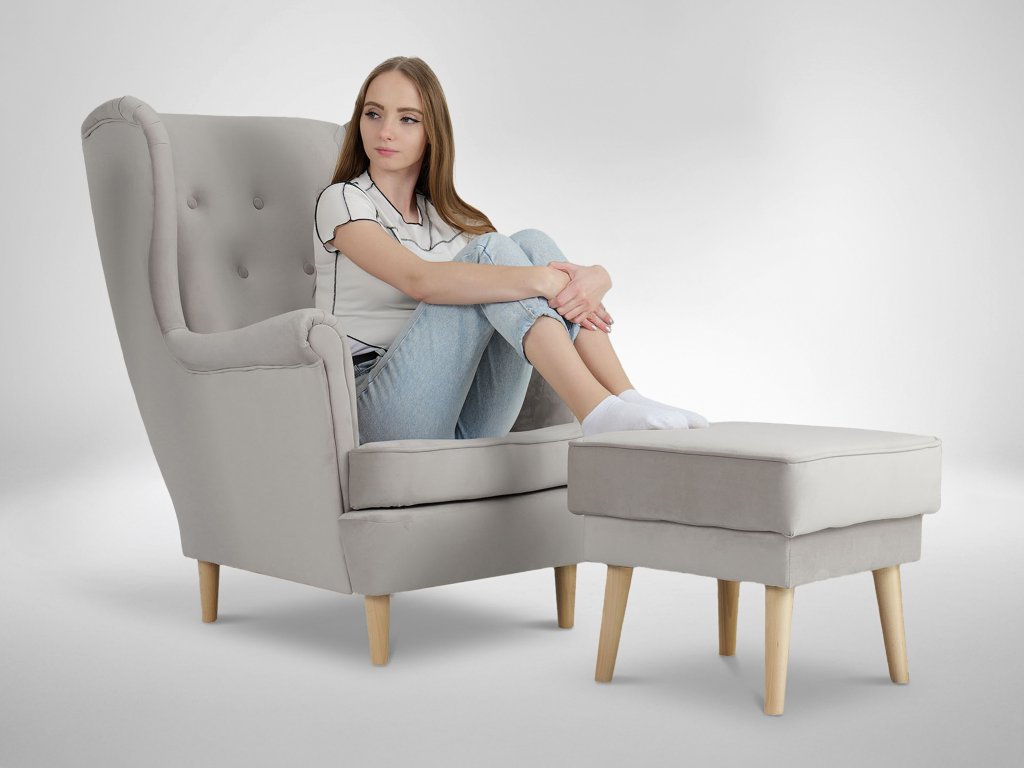 A semleges színű bútordarabokat részesíti előnyben? Akkor a DEANA bútor szettet imádni fogja. Az összeállítás egy DEANA füles fotelt és egy DEANA lábtartót tartalmaz, amelyek együtt biztosítják majd a kényelmes pihenését. A fotel Velúr Royal szövettel kárpitozott, amely nagyon kellemes tapintású és ellenálló a bolyhozódással szemben is. A fotel ráadásul gyönyörű gombokkal is díszített, amely még inkább növeli az eleganciáját. A füles fotel minőségi anyagokból készül, a lakás vagy a ház szinte bármely helyiségében elhelyezhető. A profilozott háttámlára és karfára T25, az ülésre T30 keménységű habot használtak fel. A fotel tömör fából készült lábakon áll natúr színben. A fotel tisztítását nagyban segíti, hogy az ülőfelület kivehető.