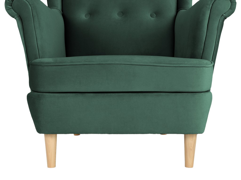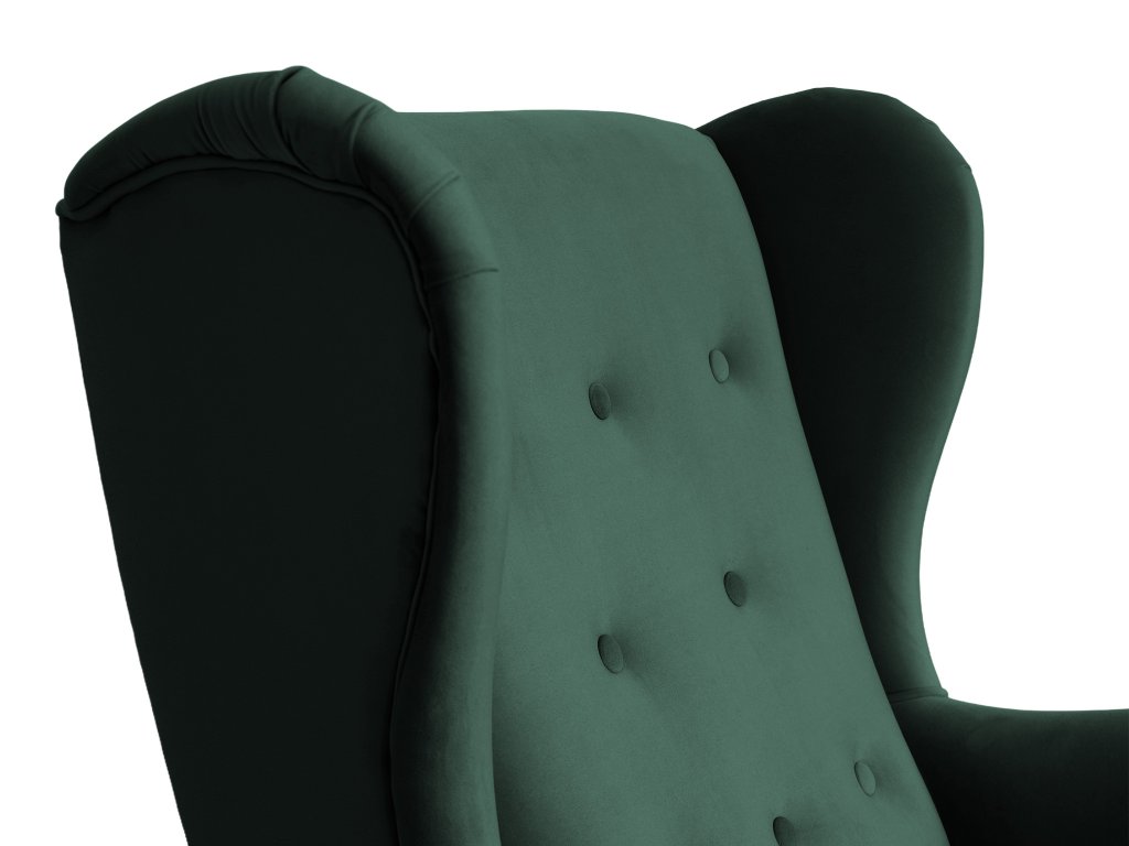 Ki ne akarná a legjobbat önmaga számára? A zöld színű füles fotel kényelmes ülést garantál és egy helyet biztosít a délutáni lustálkodáshoz. Nézheti belőle a TV-t, vagy zavartalanul elolvashatja a kedvenc könyvét. A füles fotel minőségi anyagokból készül, a lakás vagy a ház szinte bármely helyiségében elhelyezhető. A Velúr Royal típusú szövet tapintásra kellemes és lágy, nem bolyhosodik. A fotel küllemét csinosítja a háttámla steppelése. A profilozott háttámlára és karfára T25, az ülésre T30 keménységű habot használtak fel. A fotel natúr fából készült lábakon áll. A fotel tisztításához ne használjon vegyi tisztítószereket, elég egy nedves ronggyal áttörölni.