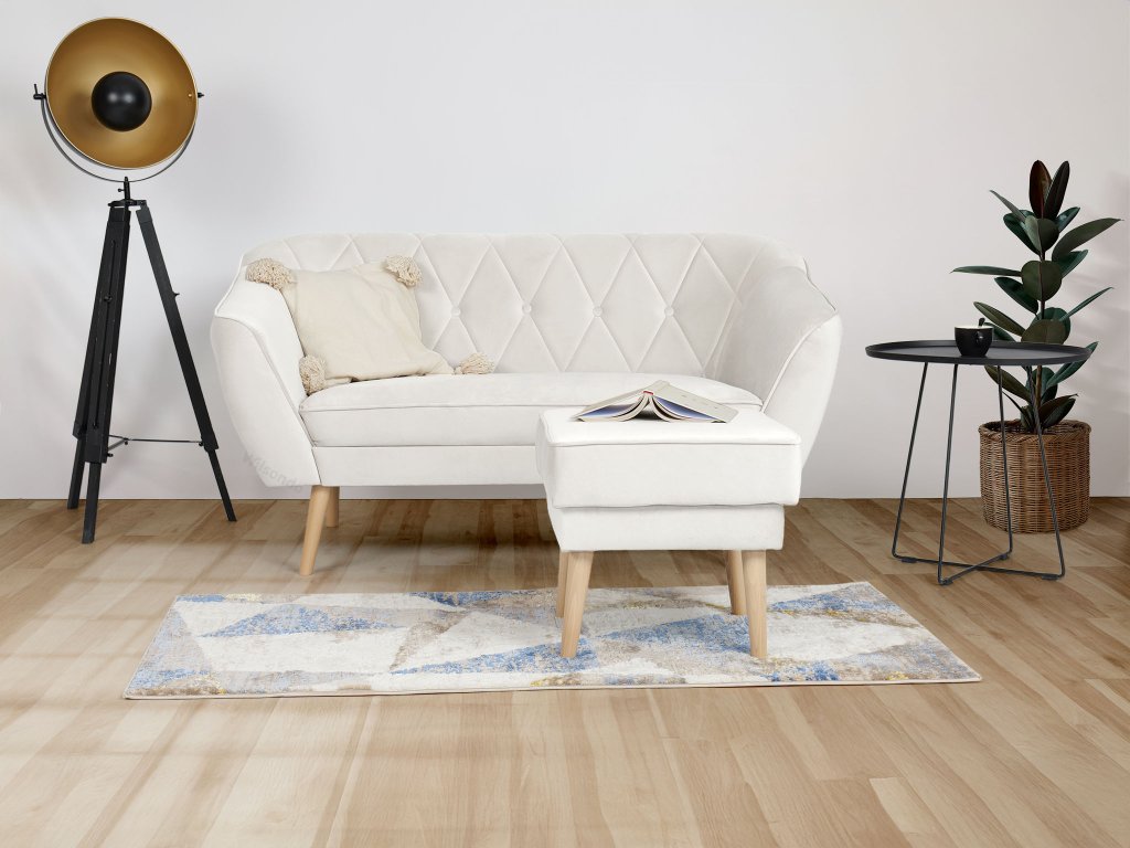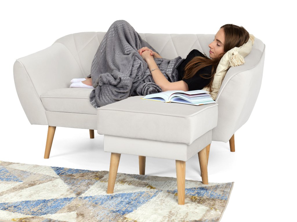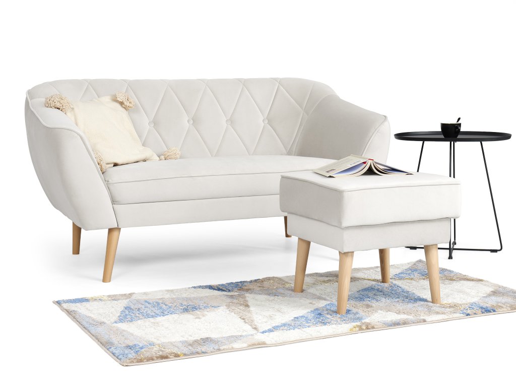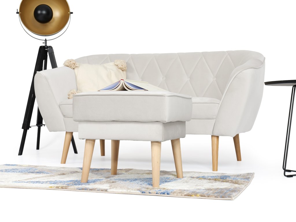 Világos bézs színű Deana garnitúra, amely egy kétszemélyes kanapét és egy lábtartót is tartalmaz