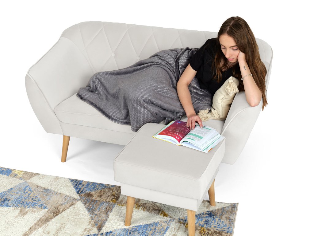 Elegáns DEANA II kétszemélyes Velúr szövettel kárpitozott kanapé praktikus puffal