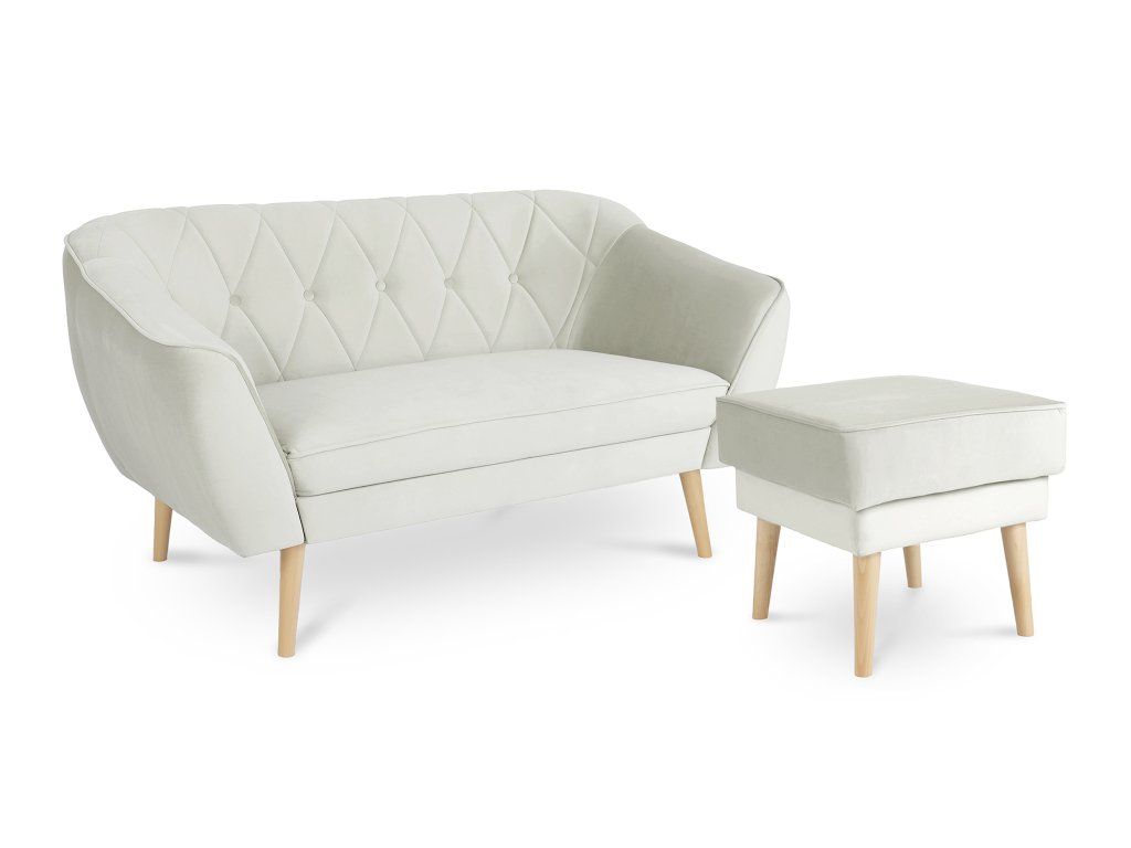 Mindkét bútordarab Velúr Royal szövettel kárpitozott, egy igazán puha kárpitszövettel, amely nem bolyhozódik és bársonyos hatást kelt. A bájos tömör fa lábak natúr színben egységes és harmonikus hatást garantálnak.
