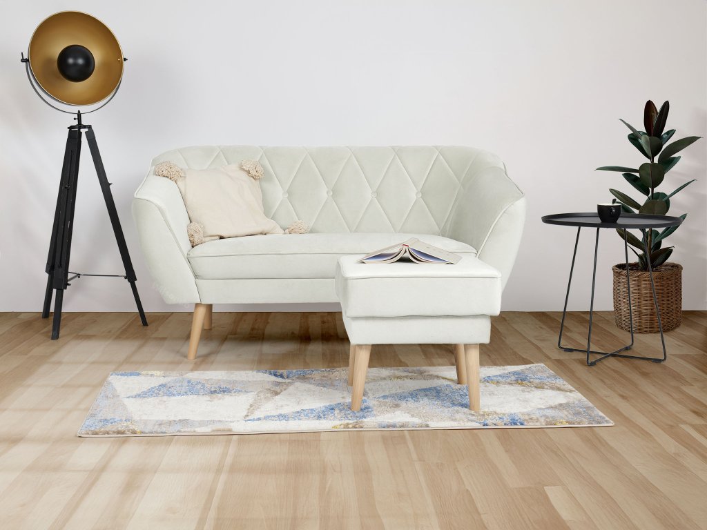 Az elegán és luxusos krémszínű DEANA II kétszemélyes kanapé és puff segítségével még szebbé teheti otthonát. A kompakt kanapé tökéletes választás a nappaliba, a dolgozószobába, az előszobába vagy akár a hálószobába is. A 100 cm hosszú ülőfelület kényelmes helyet biztosít két személy számára, a T25-ös és T30-as hab kombinációja pedig gondoskodik a puha, ugyanakkor stabil üléspozícióról. A gyönyörű steppeléssel díszített háttámla nemcsak kellemes támaszt biztosít a hátnak, hanem elegáns megjelenést is kölcsönöz a bútornak.