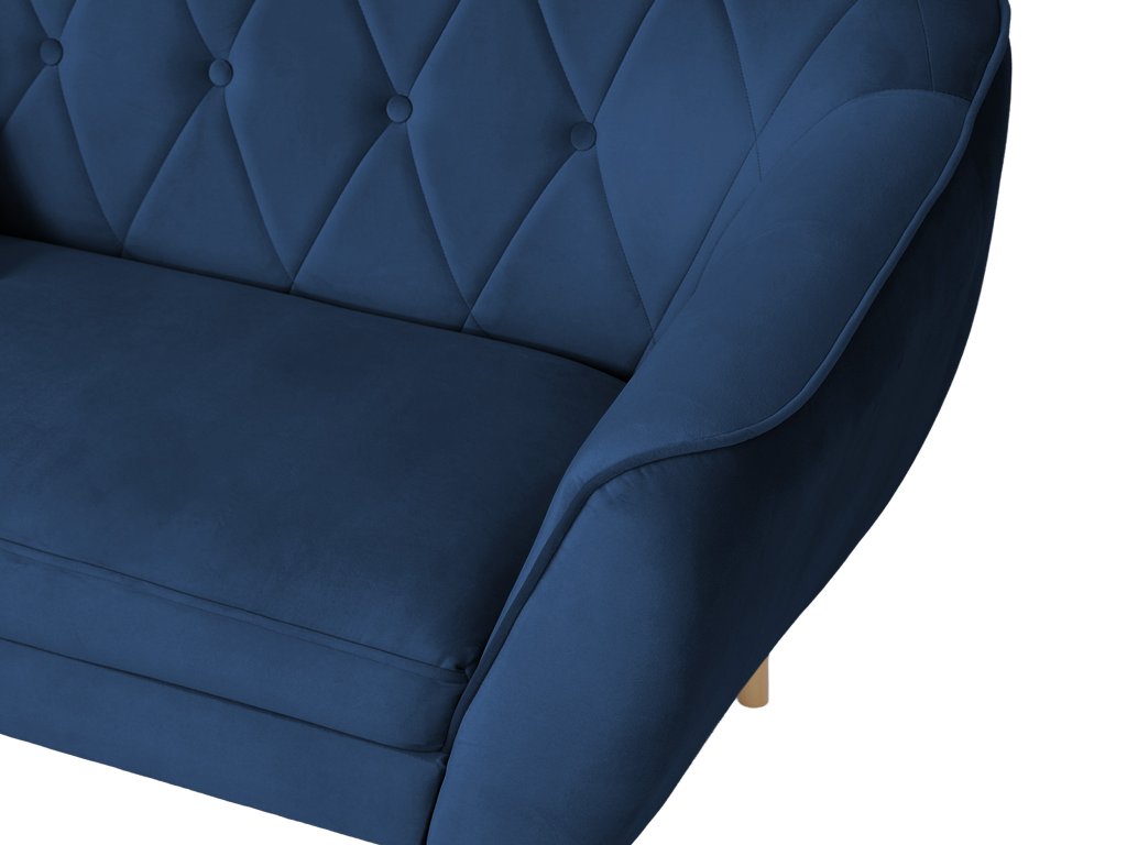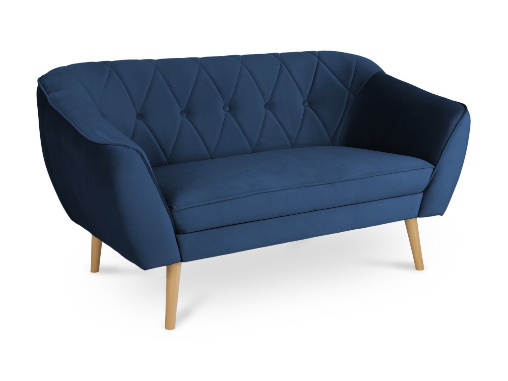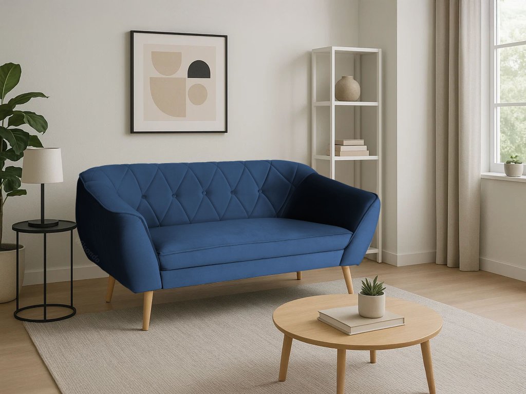 A Deana II kanapé mély kék színben modern enteriőrök stílusos kiegészítője, amely ötvözi a kényelmet, a funkcionalitást és a friss vizuális megjelenést. Kompakt méretének, fa lábainak és Velur Royal kárpitjának köszönhetően légies hatást kelt, miközben kényelmes ülést biztosít két személy számára.