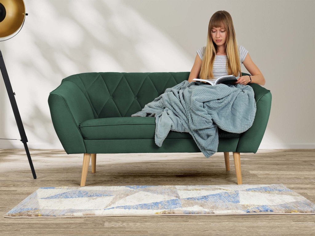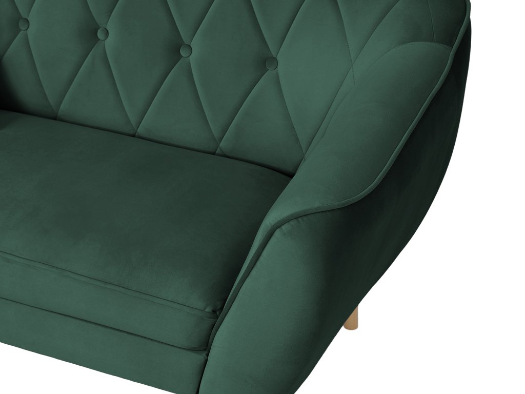 A Deana sötétzöld kanapé skandináv stílusú, két személy számára megfelelő, minden beltérbe illik, minőségi alapanyagokból készül. A kanapé bársonyos stílusát a Velúr Royal szövetnek is köszönheti, kellemes és lágy tapintású, bolyhosodással szemben ellenálló. A kanapé küllemét csinosítja a háttámla steppelése, mely T25 habbal van kitöltve. A kanapé fából készült lábakon áll. Az ülést T30 hab alkotja, biztosítja a problémamentes, hosszú és főleg kényelmes kanapé használatát. Az ülőfelület hossza 100 cm.