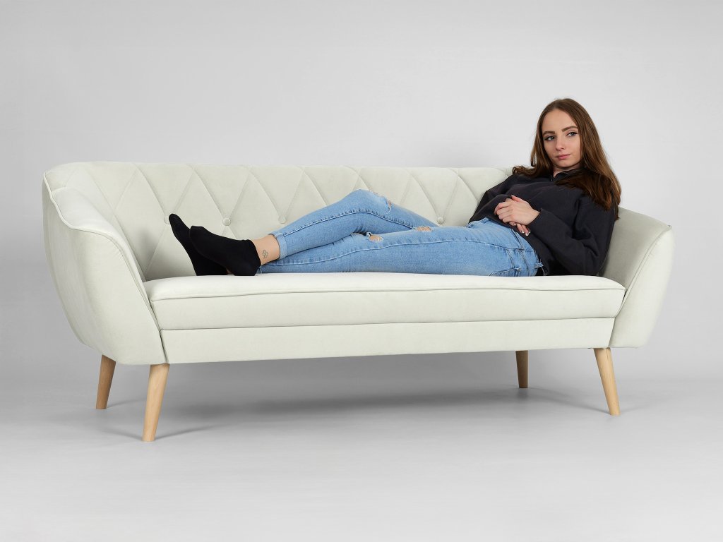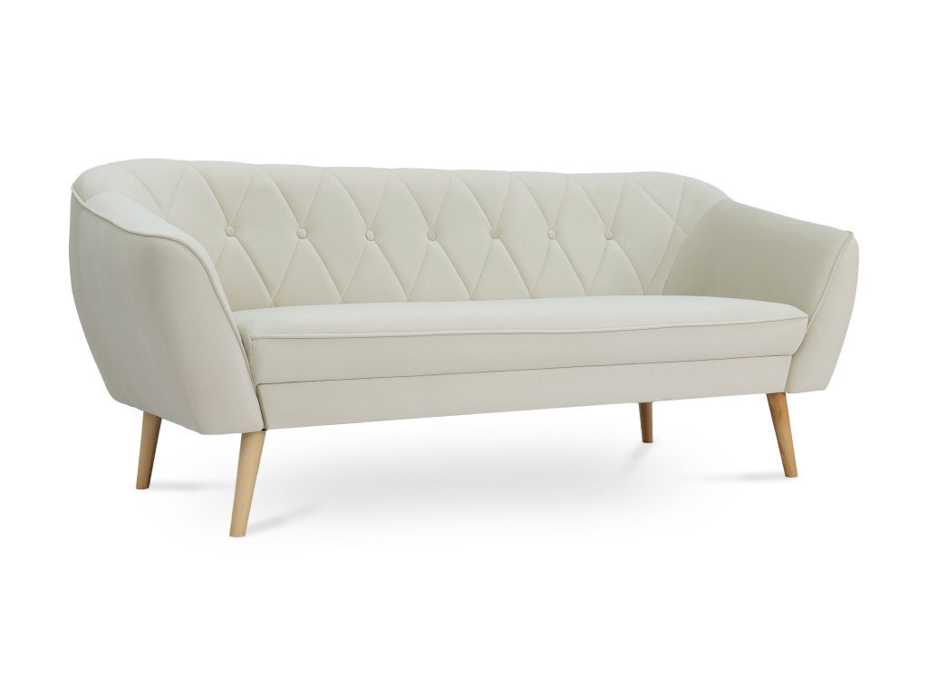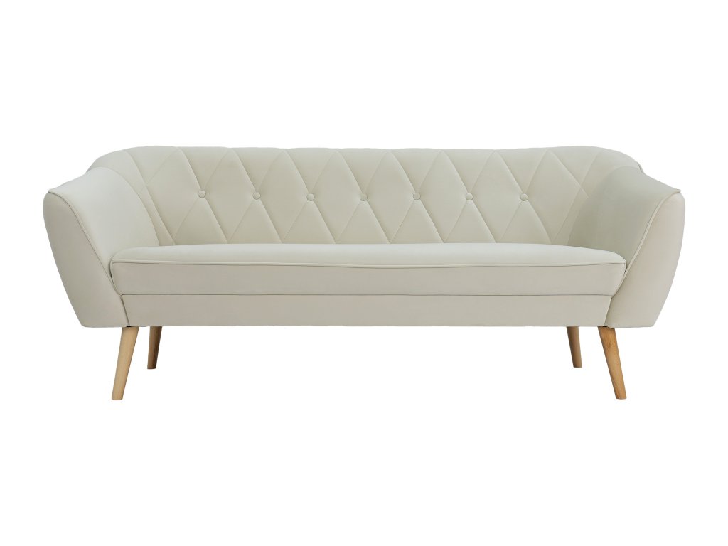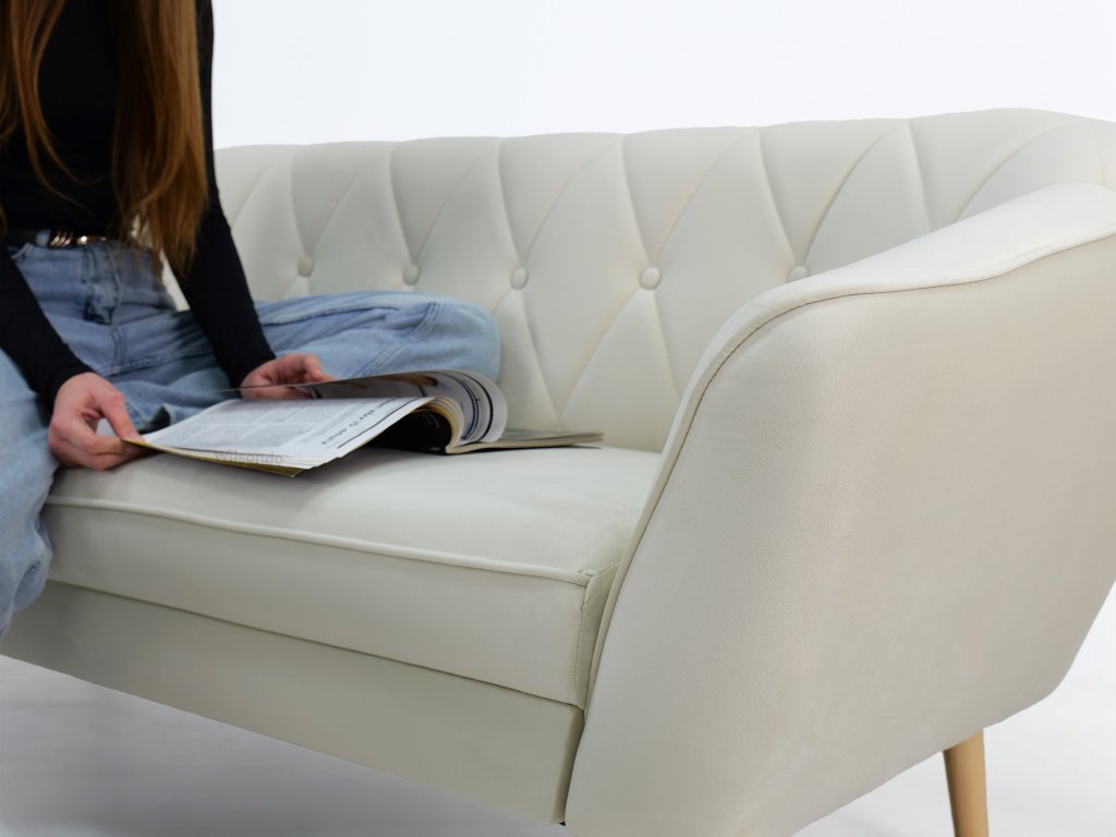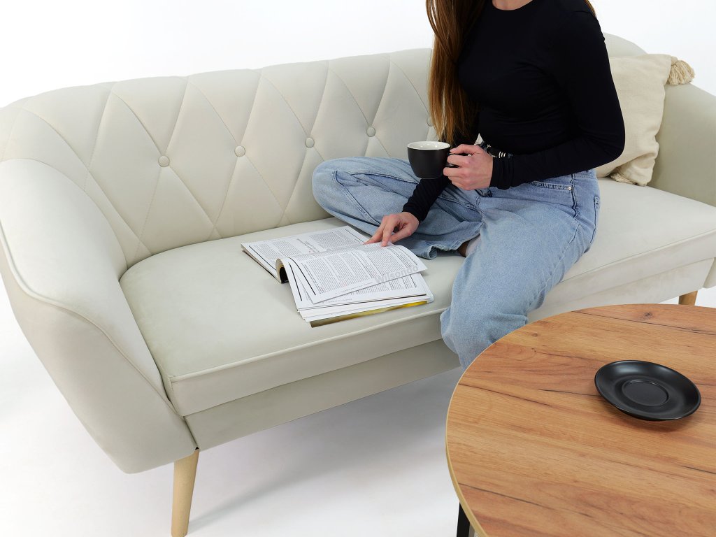 Deana kanapé pontosan az, amire szüksége van. Időtlen skandináv stílusú dizájnja és minőségi anyagai befektetéssé teszik, amely hosszú évekig szolgálja Önt. A kanapé finom és tartós Royal velúrral van kárpitozva elegáns krémszínben. Ez az anyag nemcsak csodálatosan néz ki, hanem kellemes tapintású és kopásálló is. Ennek köszönhetően ülés közben úgy érzi majd magát, mintha pamutban ülne. A kanapé háttámlája T25 habbal van kitöltve, amely optimális támaszt nyújt a testének. Az ülés T30 habbal van kitöltve, amely maximális kényelmet biztosít még hosszabb ülés esetén is. Az elegáns fa lábak könnyedséget és stabilitást adnak a kanapénak. A fa természetes anyag, amely melegséget és otthonosságot hoz az enteriőrbe.