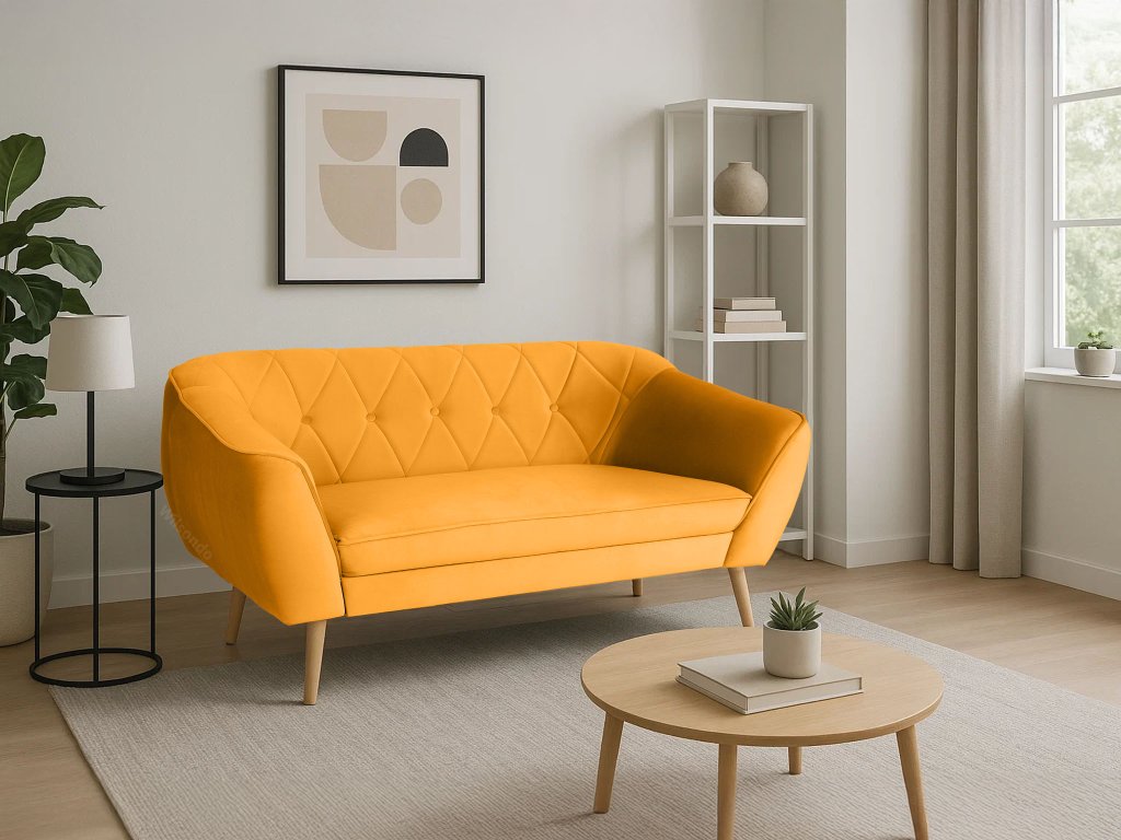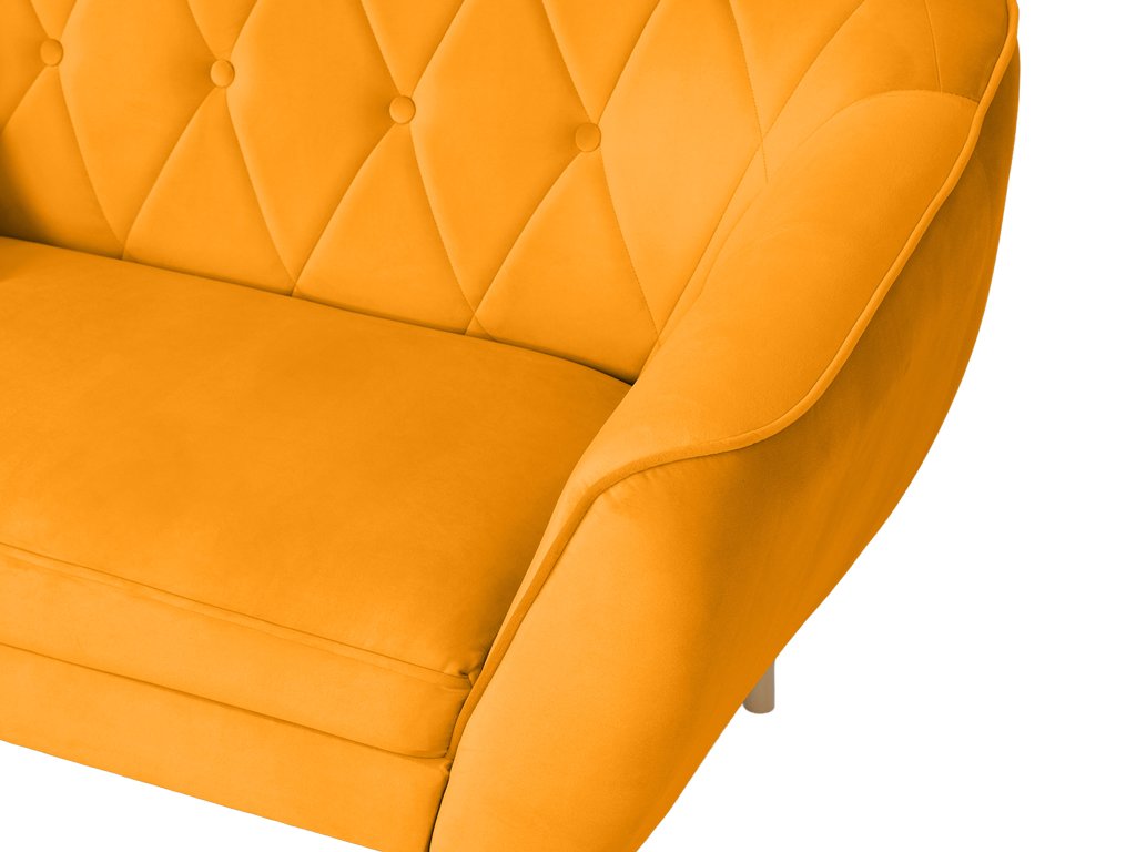 A DEANA kétszemélyes kanapéval egy stílusos, kényelmes és gyönyörű bársonyos narancssárga színű bútordarabot kap majd az otthonába. Ez a skandináv stílusú steppelt kanapé az elegancia és a komfort tökéletes kombinációját nyújtja. Kényelmes ülőhelyet biztosít két személynek. Igazán jó választást jelent a minimalista, de a modern otthonokba is. Megállja a helyét a nappaliban, az előszobában, de tökéletes választás a szépségszalonokba, kávézókba vagy éttermekbe is.