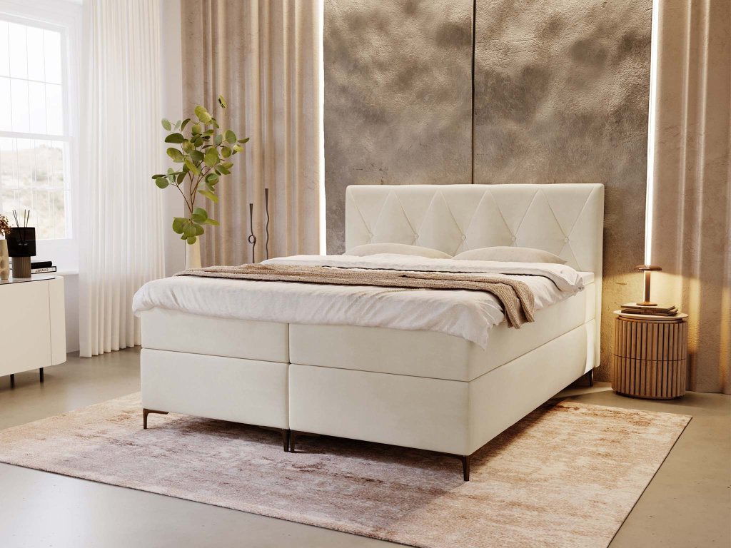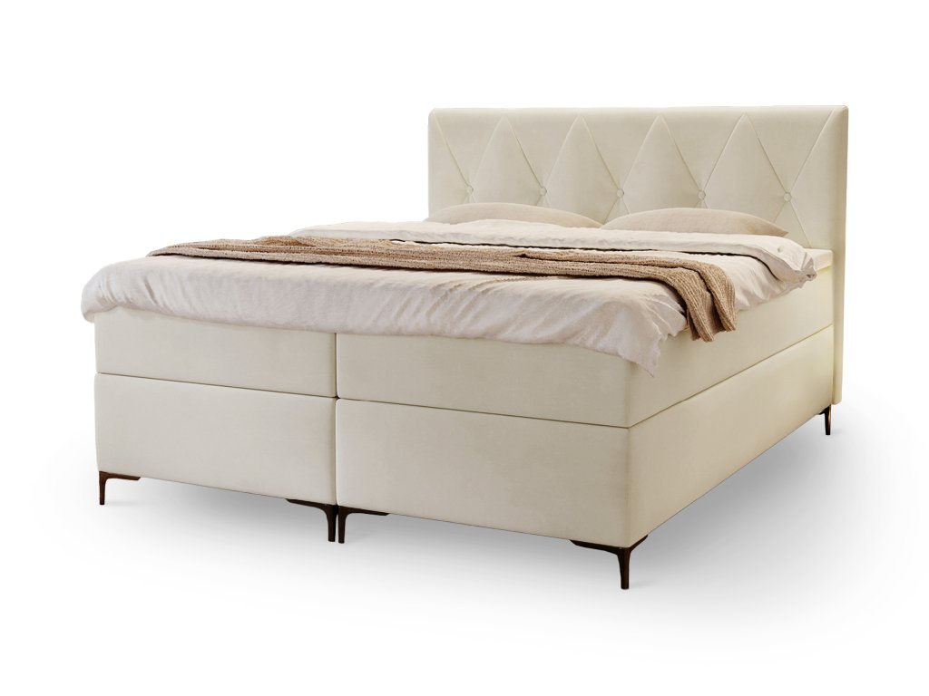 DEANAS kárpitozott boxspring ágy - krémszínű