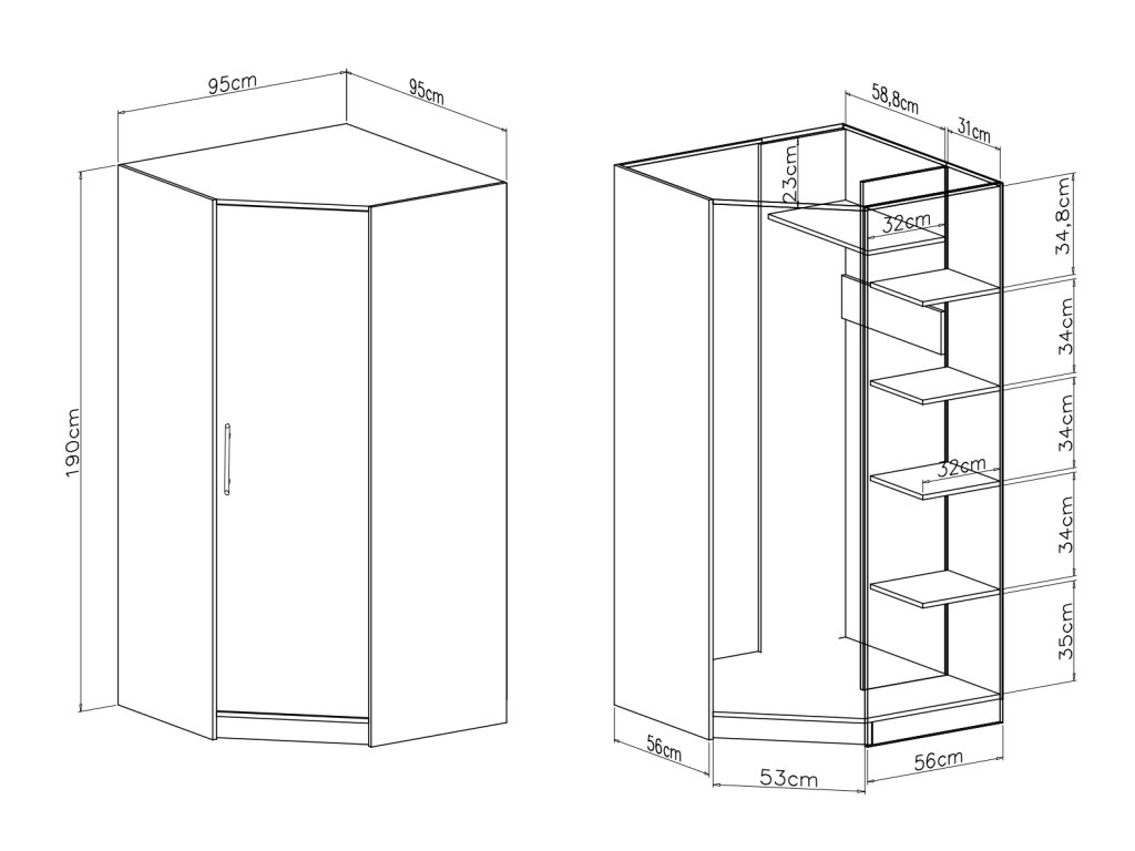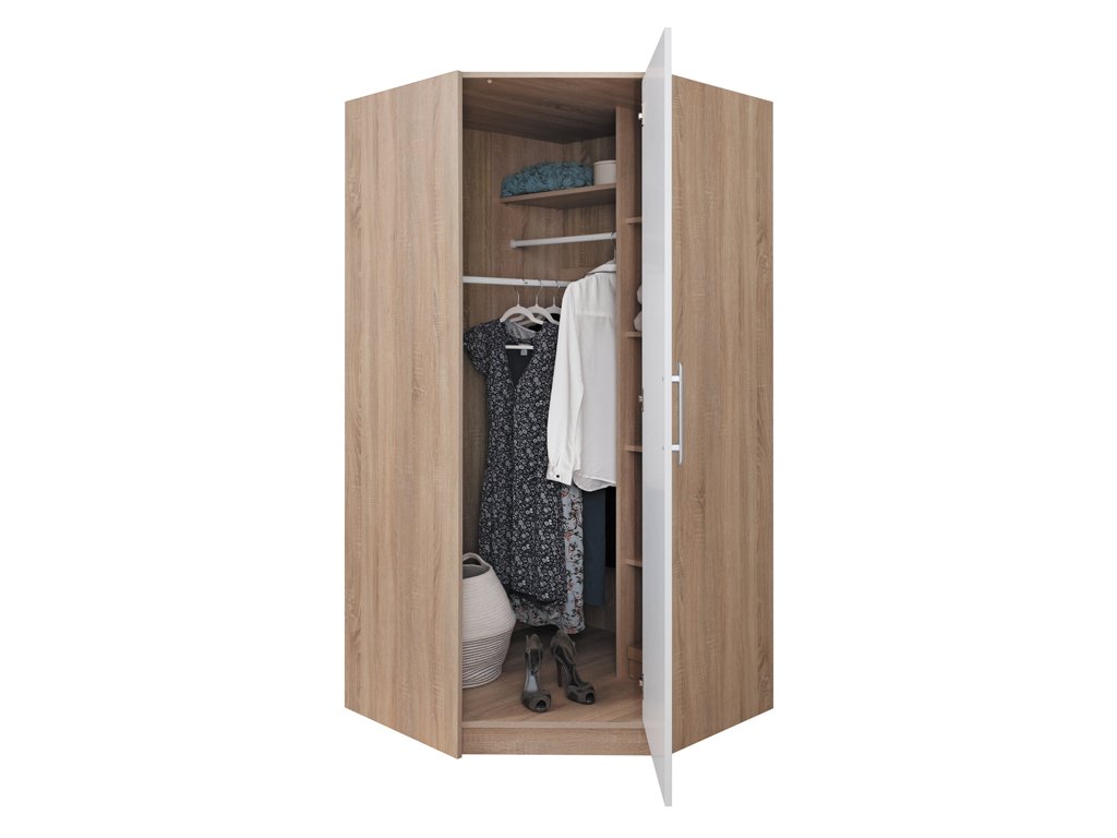 A SMART S4 sarokszekrény remek választás az előszobába, a hálószobába vagy a gardróbba. A ruhásszekrény rendkívül praktikus polcokkal és akszatórúddal is rendelkezik. A bútor minőségi 16 mm vastag laminált bútorlapból készült. Több bútor elem megvásárlásával egy nagy gardróbszekrény összeállítást tud létrehozni, számos tároló hellyel, mint ahogyan a képeken is látszik. Amennyiben még több helyre van szüksége szekrény felépítményt is tud hozzá vásárolni. A szerkény ajtaja univerzális, jobbosan és balosan is fel lehet szerelni.