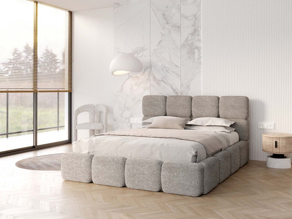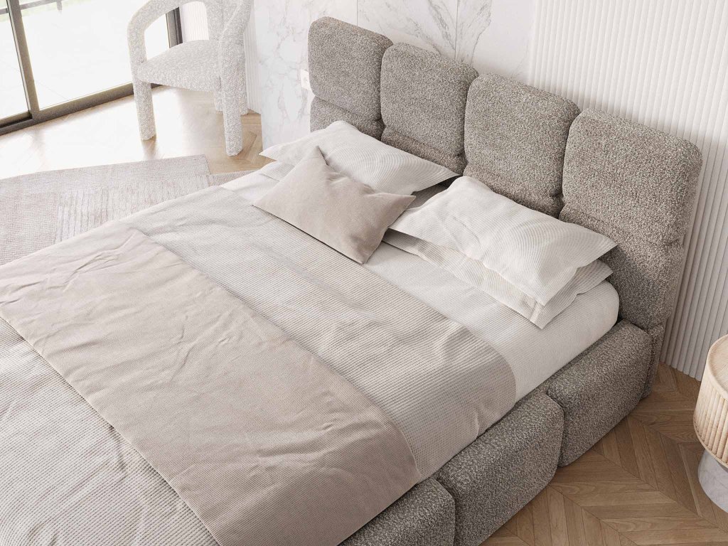 A gyönyörű szürke szövettel kárpitozott DELICATO franciaágy 140x200 cm az elegancia és a kényelem ötvözete. Már a neve is mindent elárul – a Delicato finomságot, luxust és időtálló stílust visz a hálószobába. A precízen kárpitozott ágy kárpitozásához exkluzív BOUCLE szövetet használtak fel, amely melegséget és kifinomultságot kölcsönöz az ágynak. Garantáljuk, hogy ebbe az ágyba az első látásra és érintésre beleszeret majd az ember. A domináns háttámla nemcsak esztétikai szerepet tölt be, de kényelmes támaszt is biztosít az esti könyvolvasáshoz vagy tévénézéshez. A Delicato nem csupán egy ágy, hanem egy nyugalmas menedék, amely a hálószobát a kikapcsolódás, a pihenés és a kényelem oázisává varázsolja. Tökéletes választás mindazoknak, akik a funkcionalitást és a designos megjelenést egyaránt értékelik.