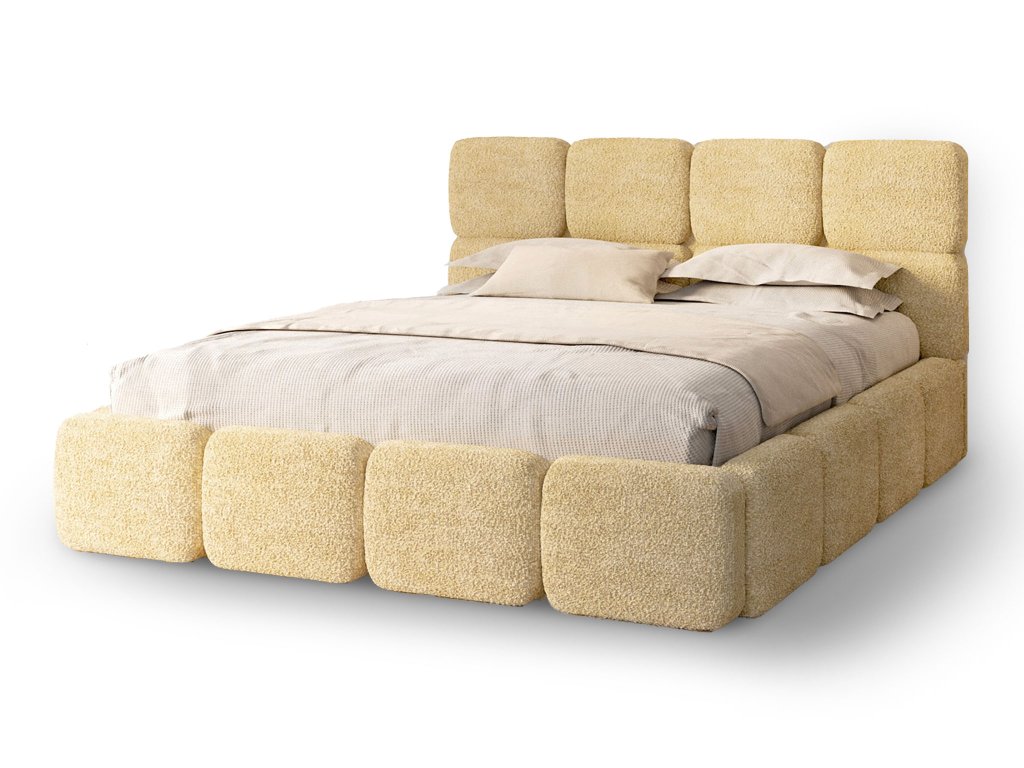DELICATO kárpitozott franciaágy ágyneműtartóval 180x200 - sárga