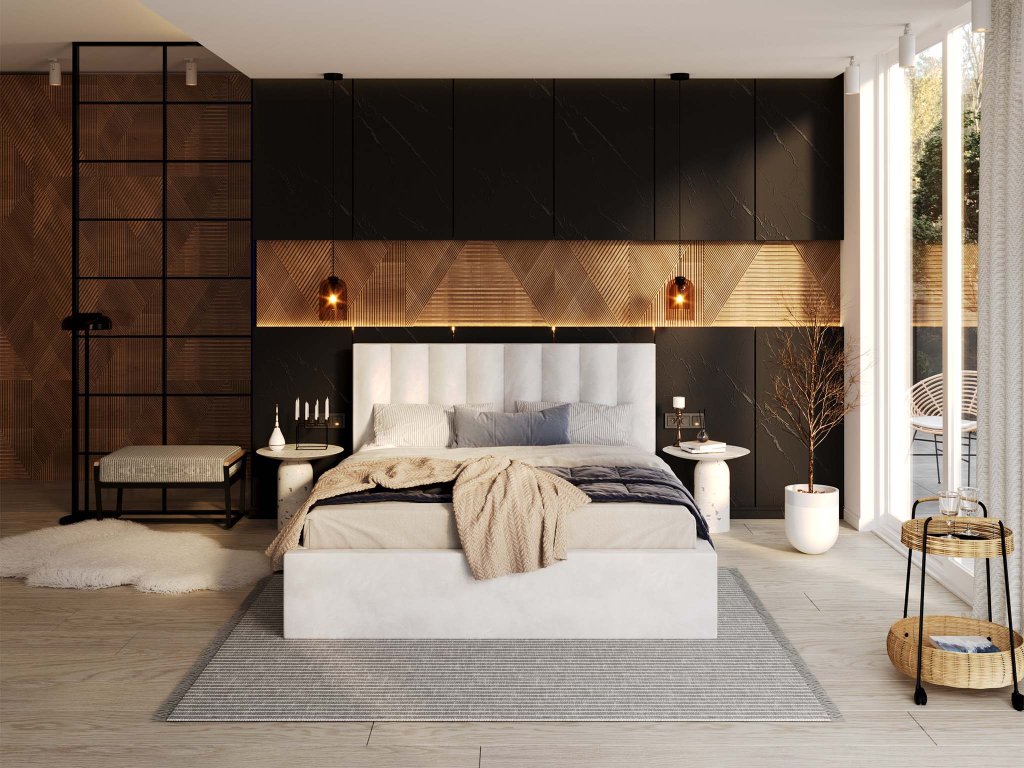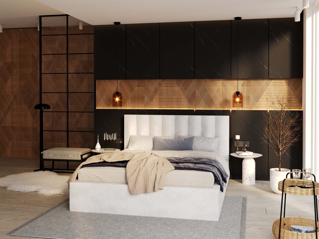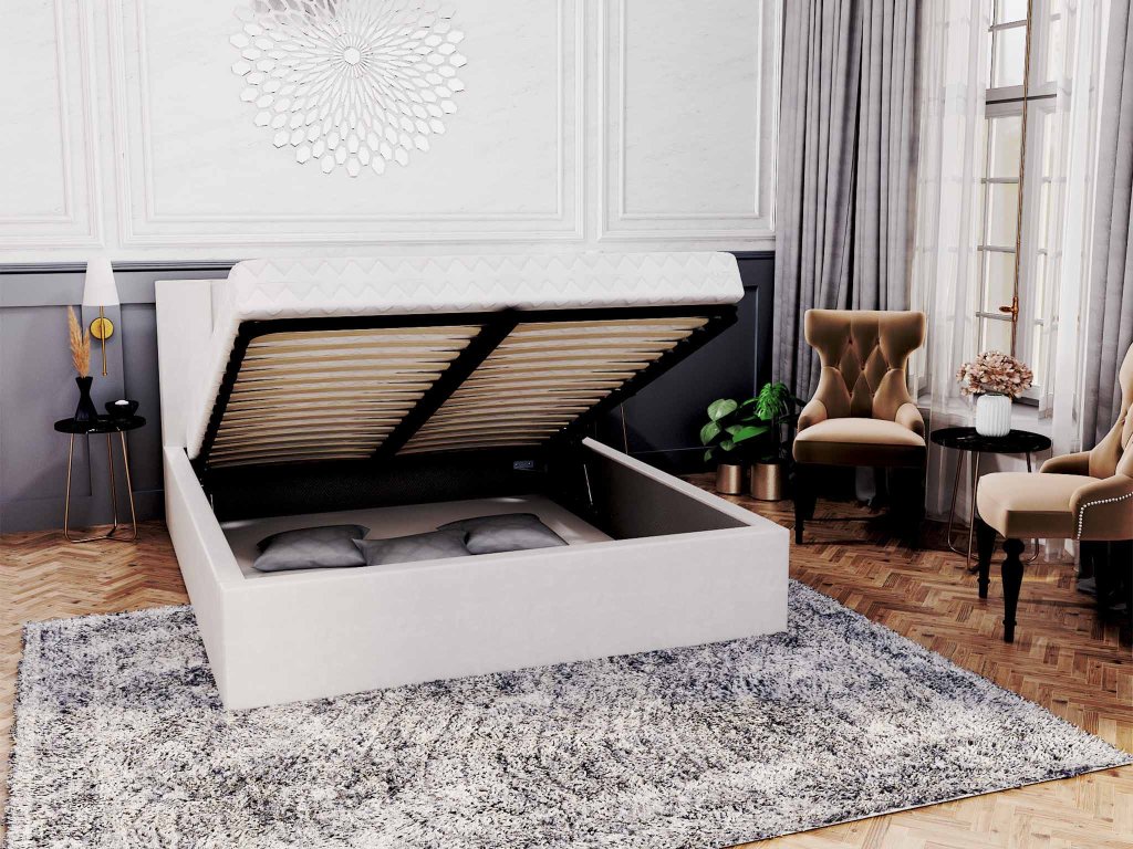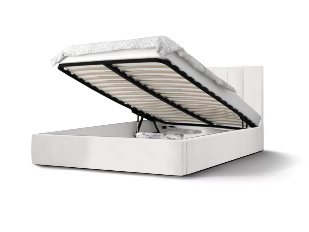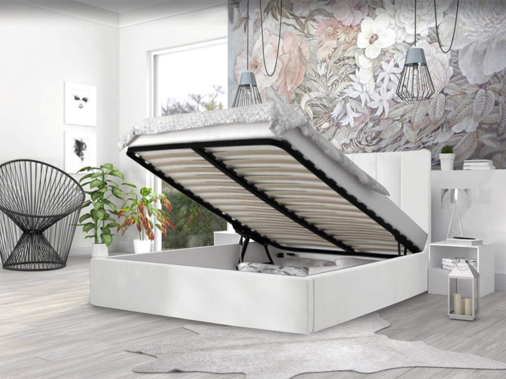 Amennyiben egy gyönyörű, letisztult és elegáns franciaágyat keres a hálószobába a kínálatunkban szereplő fehér DENVER ágyneműtartós franciaágy tökéletes választás. A Denver franciaágy az igazán magas ágytámlájával tűnik ki a többi közül, amely 110 cm magas és az igazi luxus érzetét csempészi majd a hálószobájába. Az emberek életük 1/3-át alvással töltik, így nagyon fontos, hogy egy kényelmes és strapabíró ágyat szerezzünk be, amely még évekig a szolgálatában áll majd. Az ágy fém keretes ágyráccsal rendelkezik, amely biztosítja az egész stabilitását. A fém rácsot két gazrugóval ellátott emelő mechanizmus segítségével lehet felemelni. A fém keretbe rugalmas nyírfa lamellákat (34 db) helyeztek el, amelyek 52 mm szélesek. Az ágy maximális teherbírása 400 kg. A franciaágy tágas ágyneműtartóval is rendelkezik.