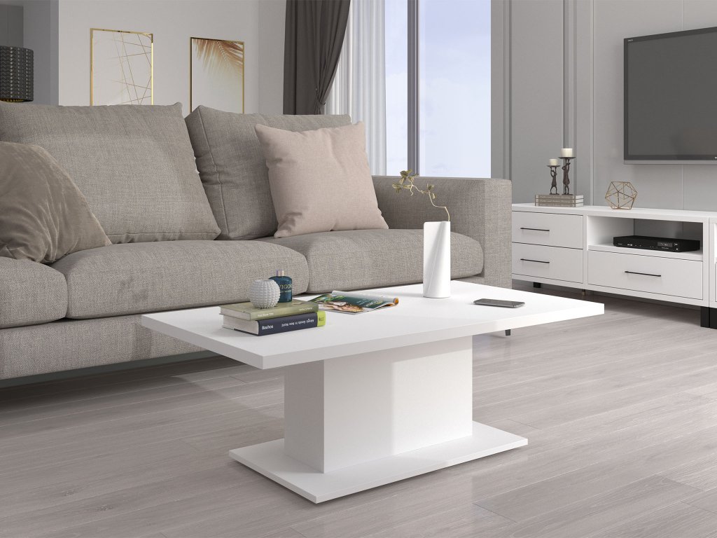 A fehér színű DENVIN dohányzóasztal letisztult formavilágával, egyszerű vonalaival és univerzális megjelenésével hívja fel magára a figyelmet. Az asztal megfelelő lehet különböző stílusú otthonokba – a modern minimalizmustól a skandináv elegancián át egészen a klasszikus stílusban berendezett otthonokig. Tökéletes választás a nappaliba, a dolgozószobába vagy az irodába is. Kiváló minőségű és tartós anyagokból készült, így hosszú élettartamot és könnyű karbantartást biztosít. A laminált bútorlap ABS élzárással van biztosítva, amely megóvja az asztalt a karcolásoktól és a sérülésektől. Felülete egyszerűen tisztán tartható, ellenáll a mindennapos szennyeződéseknek. Az asztal meghatározó eleme a középen elhelyezett stabil lába, amely erős alátámasztást biztosít, emellett érdekes dizájnelemként is szolgál. A Denvin dohányzóasztal ideális megoldás, ha olyan funkcionális, de egyben stílusos kiegészítőt keres, amely jól illik a kanapéhoz és a fotelhez.