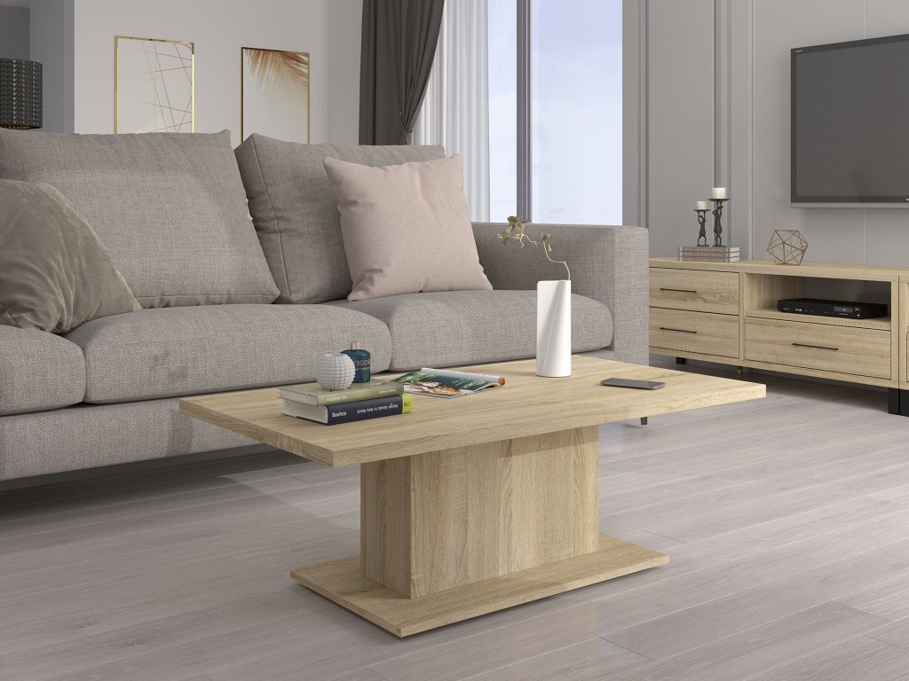 A sonoma tölgy színben tündöklő DENVIN dohányzóasztal könnyedén beillik bármilyen otthonba. Megfelelő lehet bárhová – a modern minimalizmustól a skandináv elegancián át egészen a klasszikus stílusban berendezett otthonokig. Tökéletes választás a nappaliba, a dolgozószobába vagy az irodába is. Kiváló minőségű és tartós anyagokból készült, így hosszú élettartamot és könnyű karbantartást biztosít. A laminált bútorlap ABS élzárással van biztosítva, amely megóvja az asztalt a karcolásoktól és a sérülésektől. Felülete egyszerűen tisztán tartható, ellenáll a mindennapos szennyeződéseknek. Az asztal meghatározó eleme a középen elhelyezett stabil lába, amely erős alátámasztást biztosít, emellett érdekes dizájnelemként is szolgál. A Denvin dohányzóasztal ideális megoldás, ha olyan funkcionális, de egyben stílusos kiegészítőt keres, amely jól illik a kanapéhoz és a fotelhez.