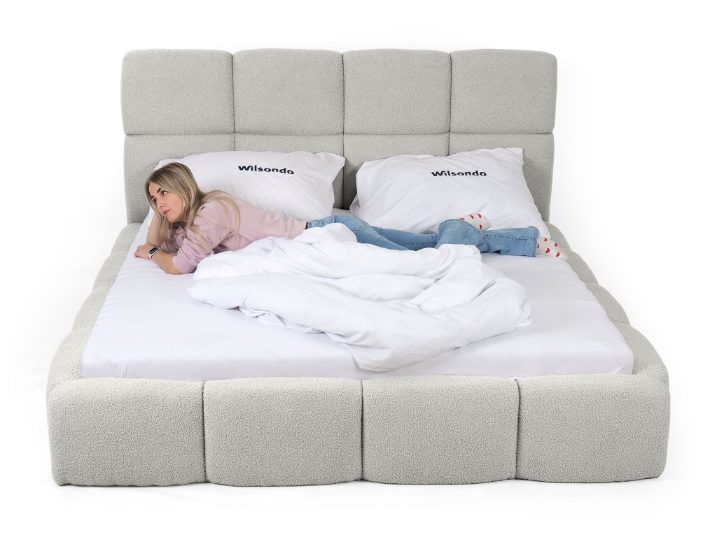 A Quelle szövet kárpitozása egyedi buklé textúrájával tűnik ki, amely a puha báránygyapjúra emlékeztet. Szürke árnyalatban elegánsan, luxusosan hat, és optikailag lágyítja az egész belső teret. Az anyag kiemelkedő kopásállósággal rendelkezik, miközben puha és kellemes tapintású marad. Ennek köszönhetően a modern kárpitozott Deriva ágy minden hálószoba domináns eleme lesz, és olyan hely, ahová szívesen tér vissza.