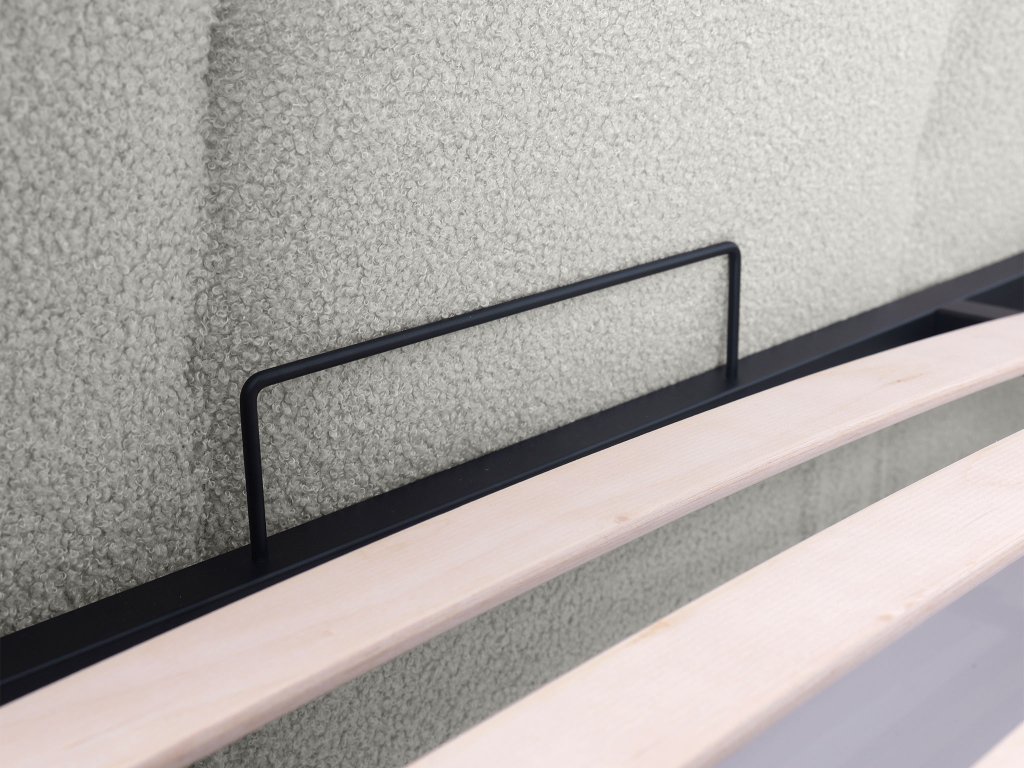 A Quelle anyag elbűvöl egyedi buklé struktúrájával, amely puha báránygyapjúra emlékeztet, és rendkívül kellemes tapintású. A szürke árnyalat könnyedséget, eleganciát és modern luxust hoz a belső térbe. Az anyag magas kopásállósággal rendelkezik, ugyanakkor puha, meleg és kényelmes marad. Megjelenésének és minőségének köszönhetően a kárpitozott Deriva ágy exkluzív karaktert kölcsönöz, és a hálószoba természetes középpontjává válik.