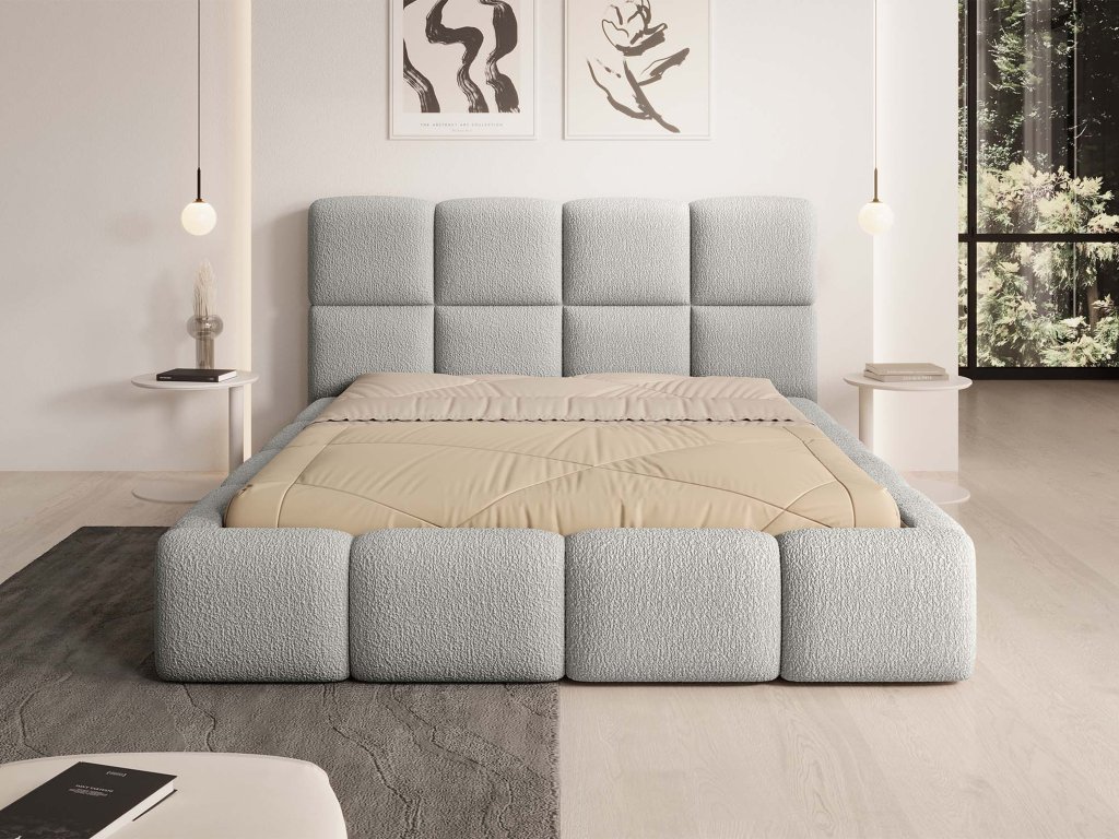 Franciaágy Deriva 160×200 világosszürke buklé anyagban tökéletes egyensúlyt hoz a hálószobába a modern dizájn, kényelem és praktikus megoldás között. Finoman lekerekített formái kellemesek és időtlenek, míg a puha kárpitozott fejtámla kényelmes támaszt nyújt olvasás vagy pihenés közben. A lamellás ágyrács alatt található egy tágas tárolóhely, ideális ágynemű, takarók vagy szezonális kiegészítők számára. Erős fém szerkezet és minőségi ágyrács garantálják az ágy stabilitását, tartósságát és hosszú élettartamát. Világosszürke Deriva ágy légies, elegáns és harmonikus megjelenést kölcsönöz a hálószobának. A semleges árnyalatnak köszönhetően könnyen kombinálható különböző belső stílusokkal, és a szoba természetes dominánsává válik.