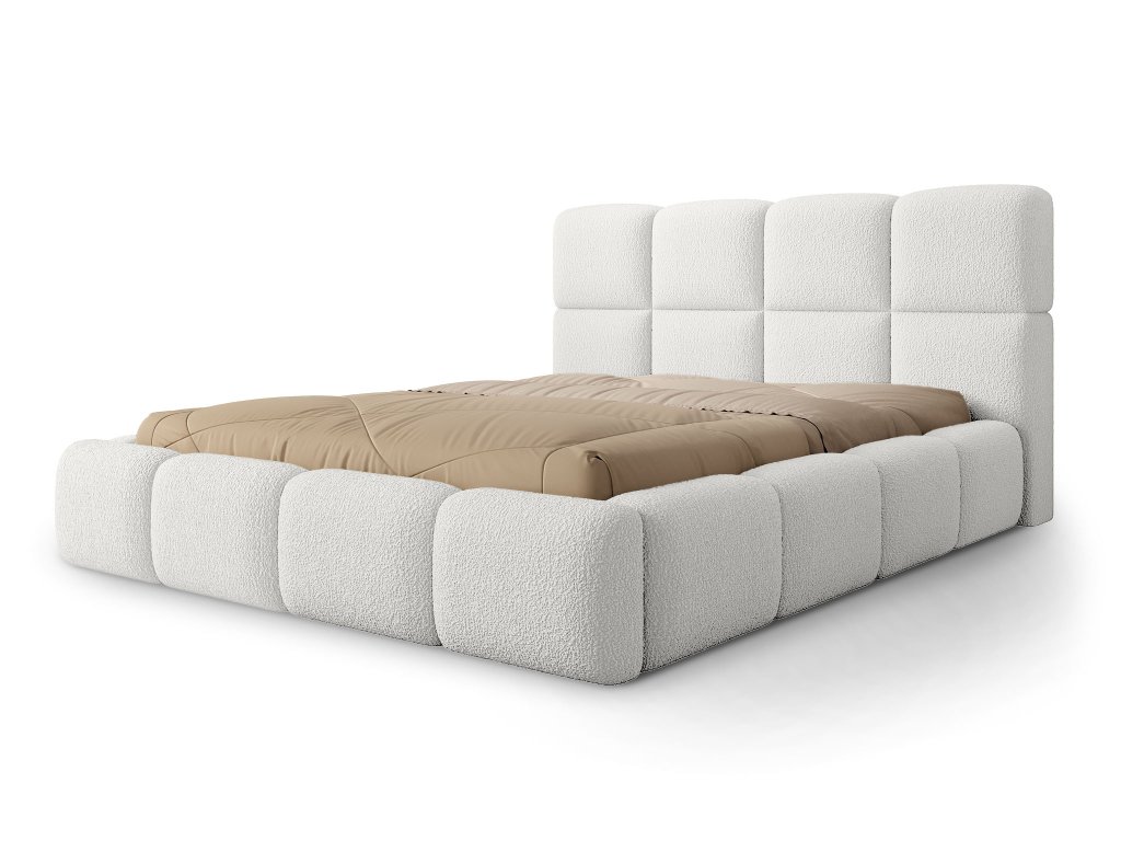 A Quelle anyag finom buklé textúrájával hívja fel magára a figyelmet, amely a puha báránygyapjúra emlékeztet. A fehér árnyalat tisztaság, világosság és modern luxus érzetét kelti a hálószobában. Az anyag kopásálló, ugyanakkor rendkívül puha, meleg és kellemes tapintású. Minőségének és elegáns megjelenésének köszönhetően a Deriva 180×200 kárpitozott ágy különleges karaktert kap, és a hálószoba domináns elemévé válik, amely ötvözi a szépséget, kényelmet és tartósságot.