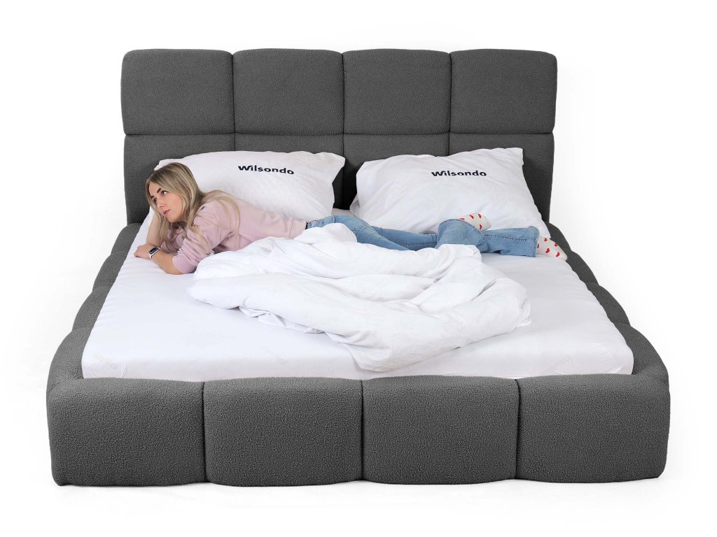 A Quelle anyag jellegzetes buklé textúrájával hívja fel magára a figyelmet, amely puha hurkokra emlékeztet. A szürke szín tisztaságot, levegősséget és modern bájt hoz az enteriőrbe. Az anyag kellemes tapintású, kopásálló és egyszerre otthonos és luxus hatást kelt. A precíz kidolgozással kombinálva a Deriva 180×200 ágy különleges darabbá válik, amely ötvözi a kényelmet, eleganciát és időtlen minőséget – az alvásért, amit valóban megérdemel.