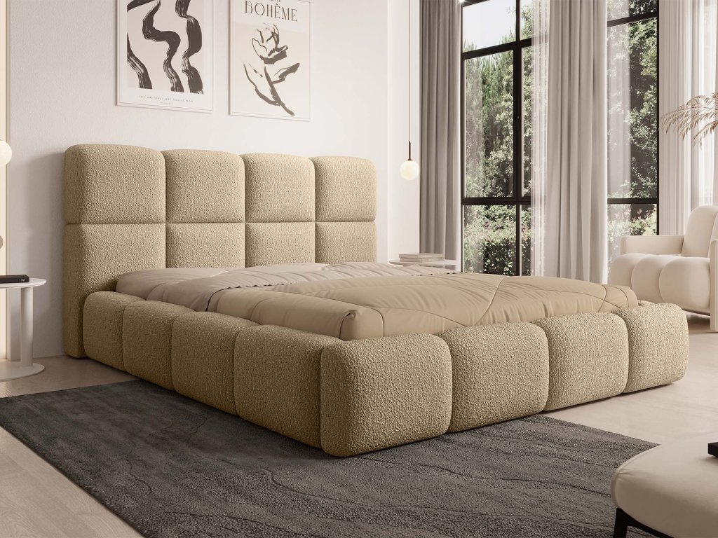 A Deriva 200×200 bézs buklé anyagú franciaágy ötvözi a stílusos dizájnt, a kényelmet és a praktikusságot. A puha kárpitozott fejtámla kellemes támaszt nyújt olvasás vagy pihenés közben, míg a finoman lekerekített vonalak harmóniát és légies érzést kölcsönöznek a hálószobának. A lamellás ágyrács alatt található egy nagy tárolóhely, amely alkalmas ágynemű, takarók vagy szezonális ruhák tárolására. A masszív fém szerkezet és a minőségi ágyrács garantálja a stabilitást, a hosszú élettartamot és a kényelmes alvást minden nap.