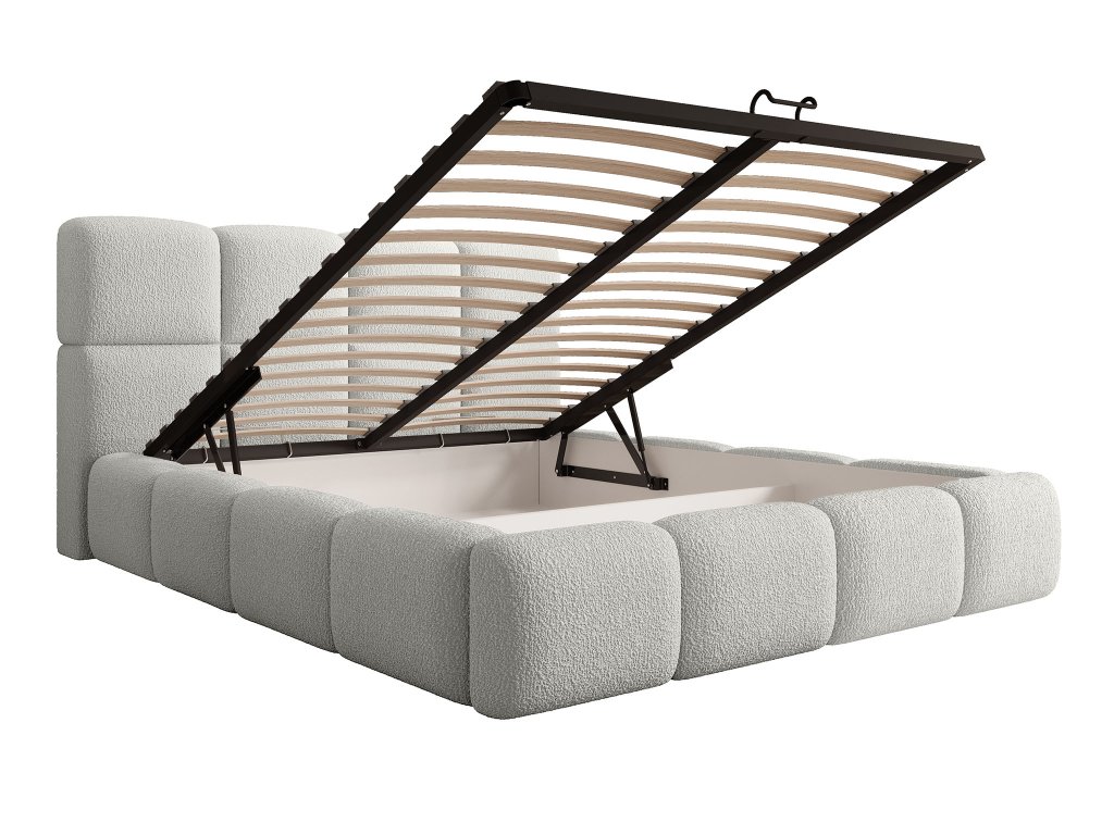 A Deriva 200×200 világosszürke buklé anyagú franciaágy ötvözi a modern dizájnt, a kényelmet és a praktikusságot. A puha kárpitozott fejtámla kellemes támaszt nyújt olvasás vagy pihenés közben, míg a finoman lekerekített vonalak légies és elegáns érzést kölcsönöznek a hálószobának. A lamellás ágyrács alatt található egy tágas tárolóhely, amely ideális ágynemű, takarók vagy szezonális ruhák tárolására. A stabil fém szerkezet és a minőségi ágyrács hosszú élettartamot, szilárdságot és kényelmes alvást biztosít minden nap.