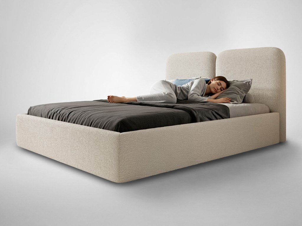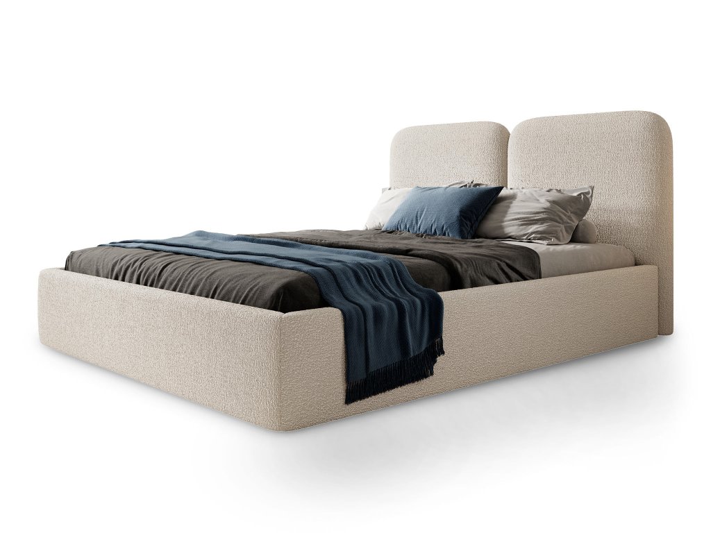 DESIO Slim kárpitozott ágyneműtartós franciaágy 160x200 - krémszínű