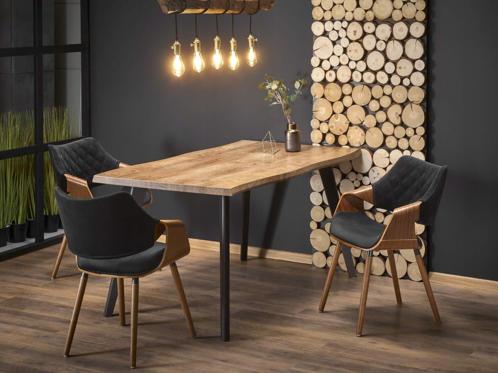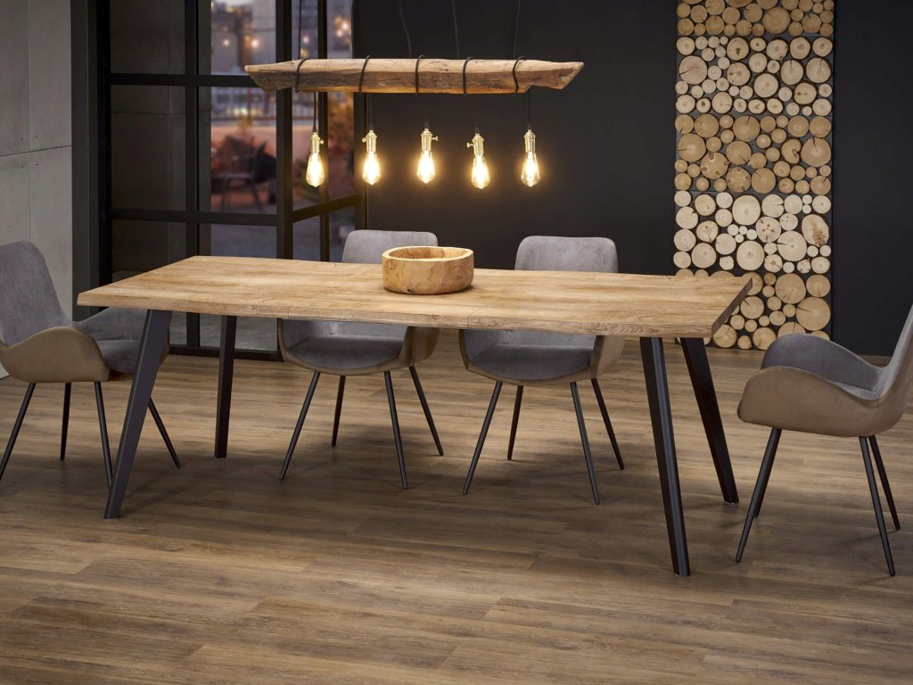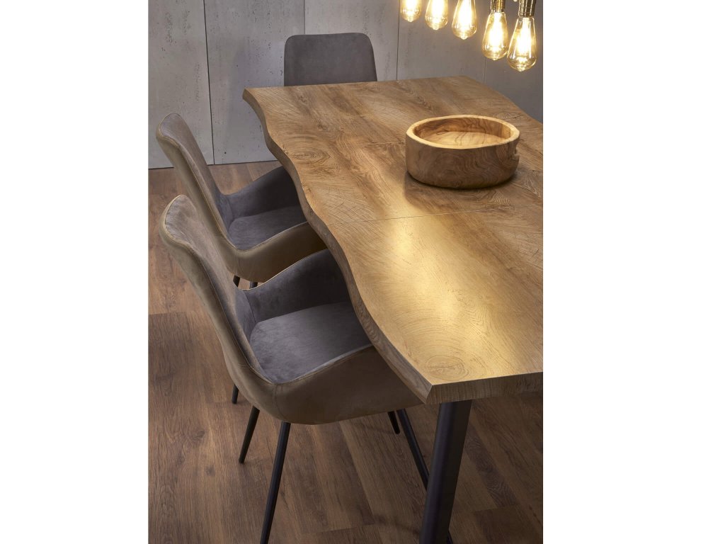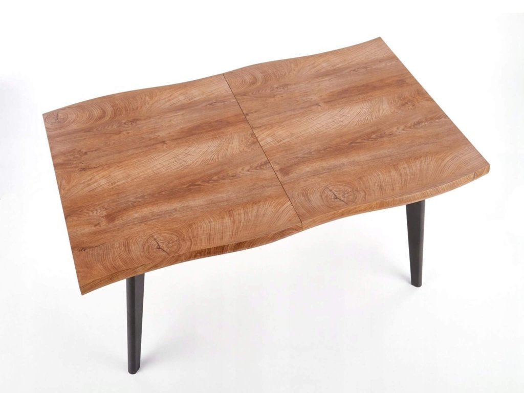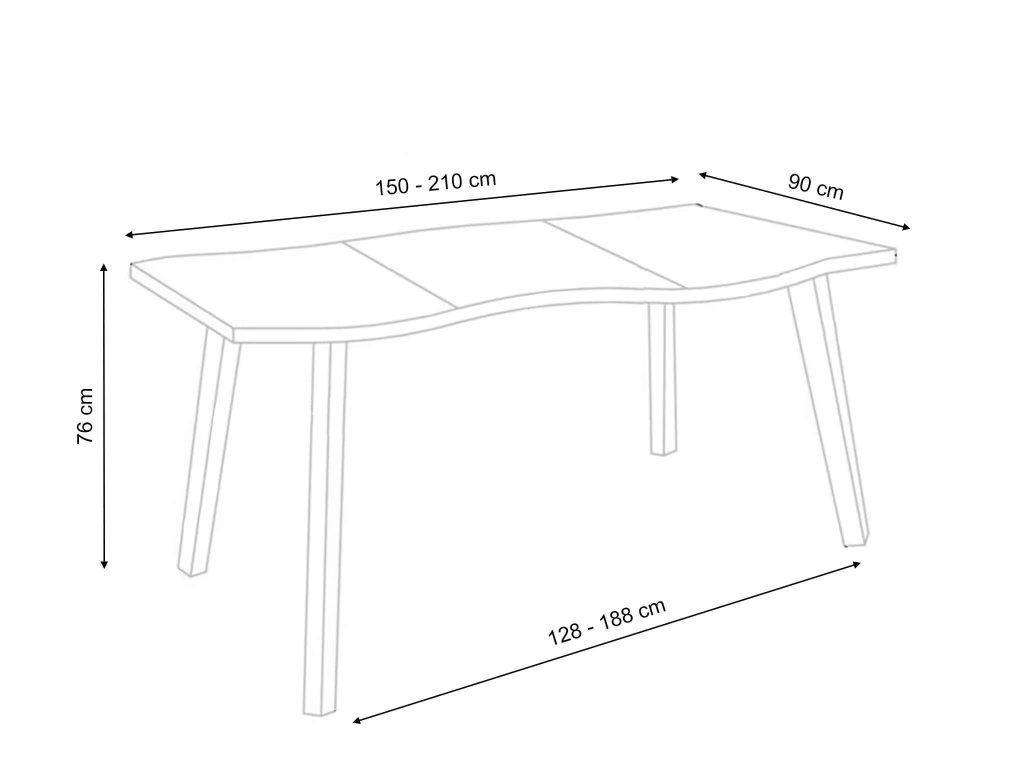 A modern és nagy DICKSON bővíthető étkezőasztal remek választás minden modern étkezőbe vagy nappaliba. A szétnyitható asztal akár 210 centiméter hosszúra is széthúzható, melynek köszönhetően tökéletes lesz a családi vacsorákhoz vagy akár vendégek fogadásához is. Az asztallap furnérozott MDF-ből készül natúr tölgy színben. Az asztal lábai tömör fából készültek fekete színben. Az asztallap hullámos designos szélekkel nyűgözi majd le. Amennyiben minőségi és praktikus étkezőasztalt keres, a Dickson asztal remek választás. Egészítse ki az asztalt egyedi székeinkkel.