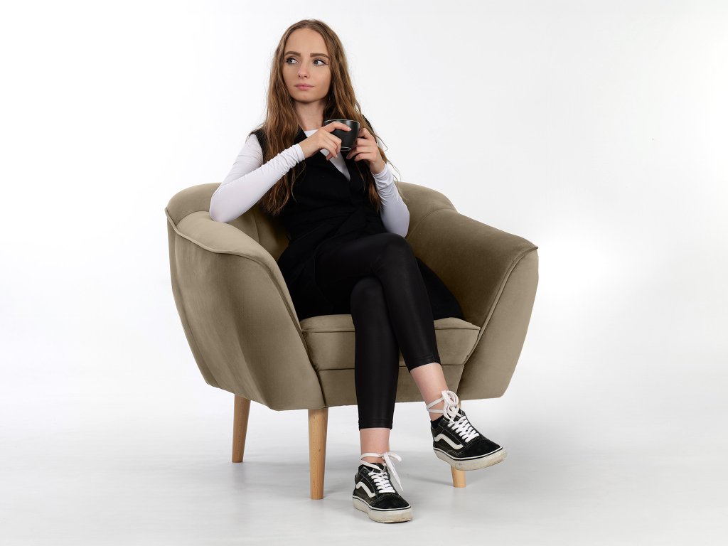 Amennyiben egy olyan kárpitozott fotelt keres, amely egyszerre nyűgözi le a kinézetével és a kényelmességével, a DÍVA fotel tökéletes választás lehet. Világosbarna színe kellemes hatást kelt, és harmonikus összhangot teremt minden helyiségben. A bútor Royal szövettel kárpitozott és a prémium anyagok közé tartozik – rendkívüli puhaság, enyhe fényesség és magas ellenállóképesség jellemzi. Ez a luxusos szövet hosszú távon is megőrzi a külalakját és nem fakul ki, így hosszú évekig élvezheti szépségét.