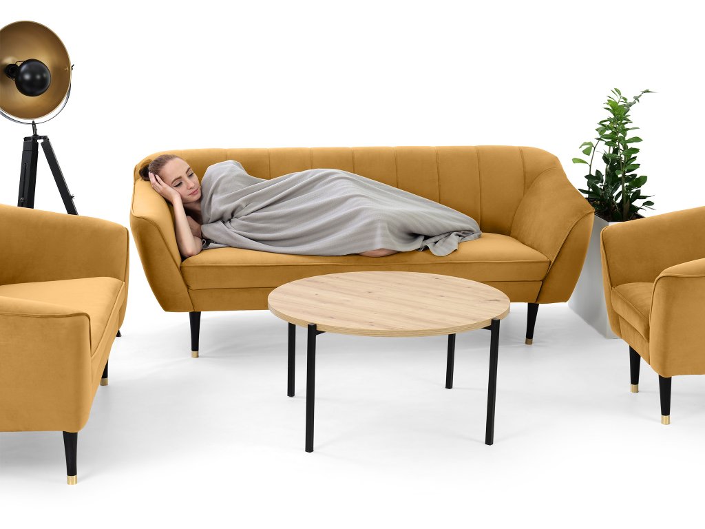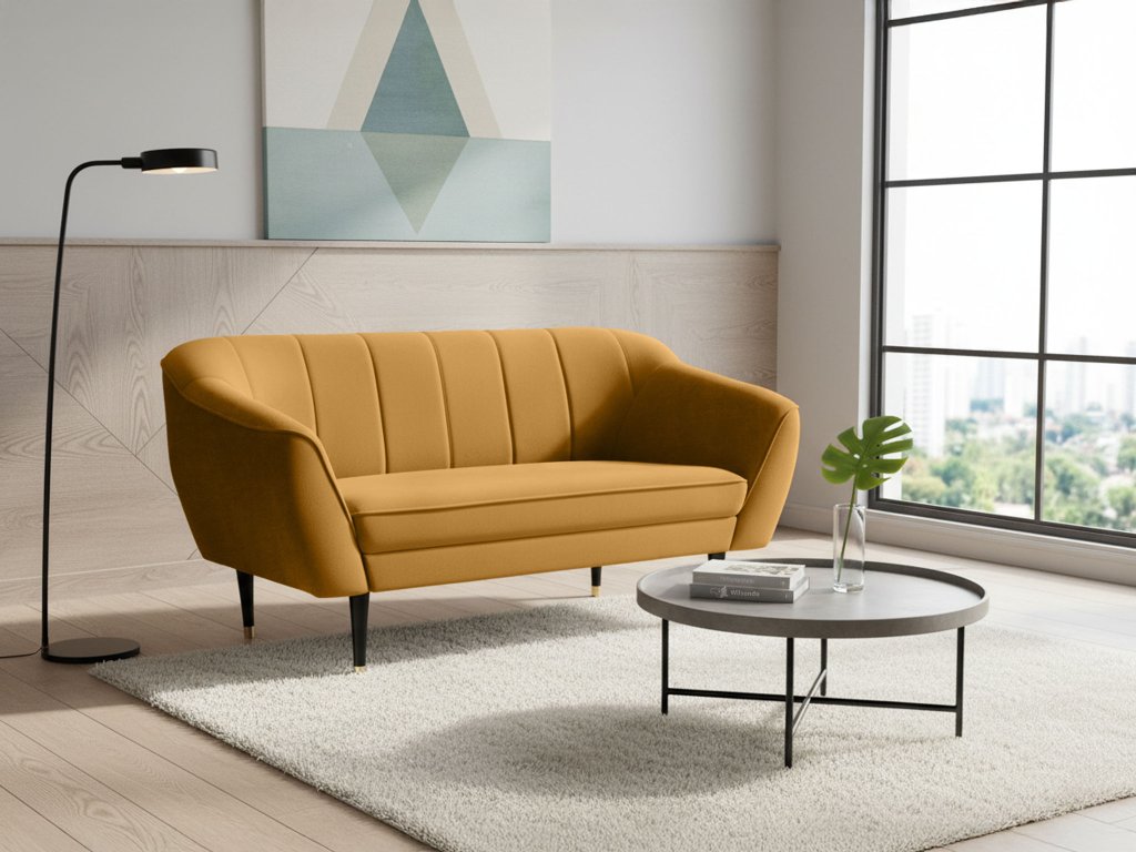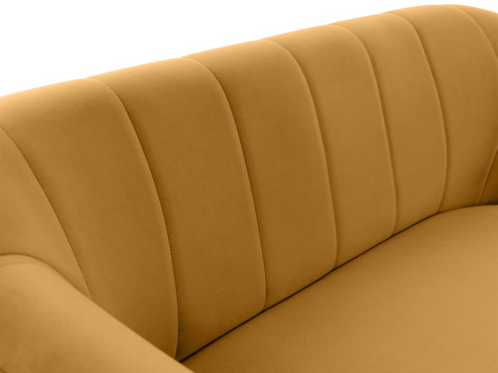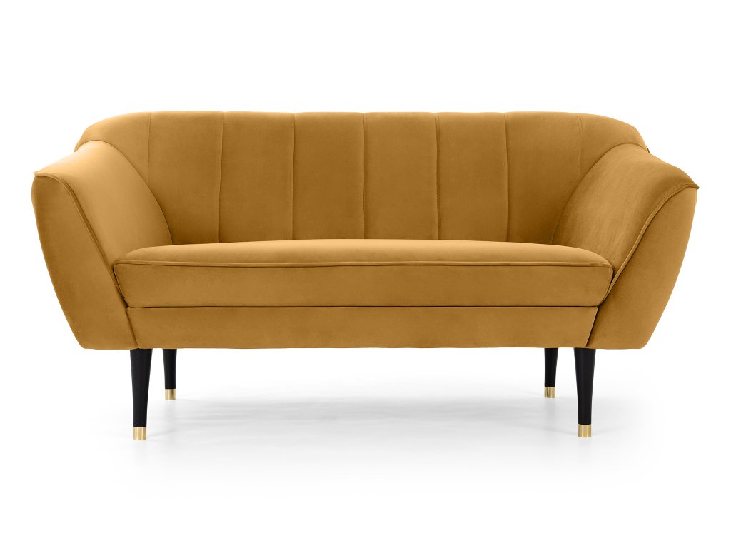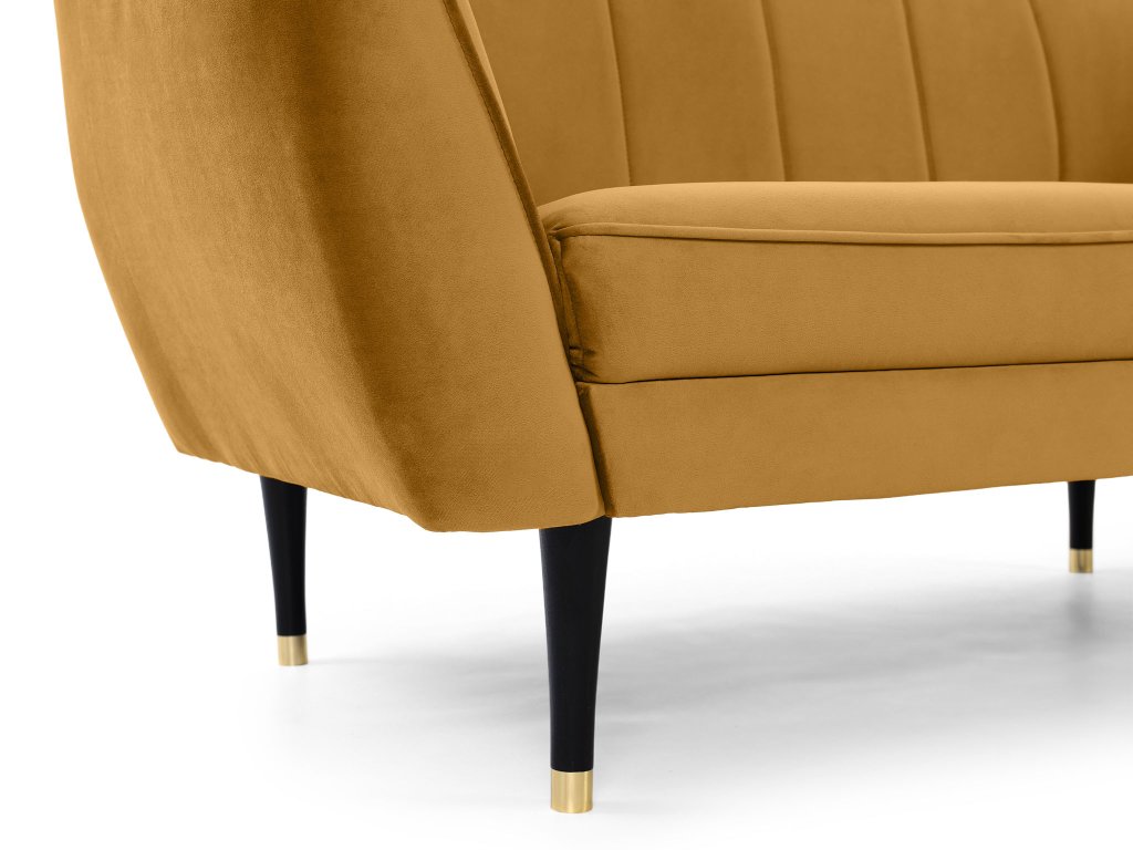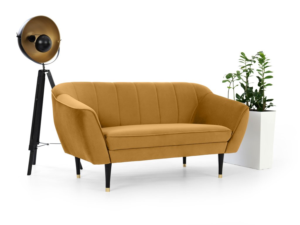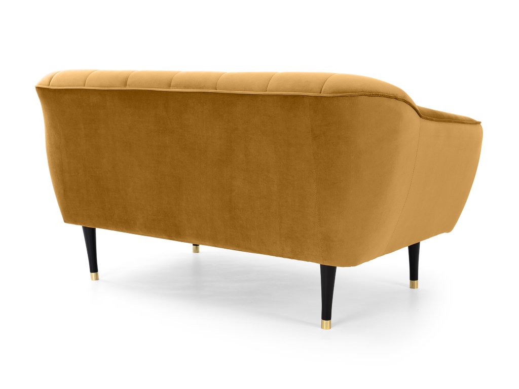 A kétszemélyes DÍVA II kanapé azok közé a bútordarabok közé tartozik, amelyek nem hiányozhatnak egyetlen otthonból sem. A felhasznált minőségi anyagok biztosítják majd a kényelmét. A gyártásakor Velúr Royal kárpitozó szövetet használtak fel, amely nem bolyhosodik.A profilozott háttámlára és a karfára T25, az ülésre T30 keménységű habot használtak fel. A kanapé háttámláját vertikális steppelés is csinosítja. A kanapé fekete színű lábakon áll arany véggel.