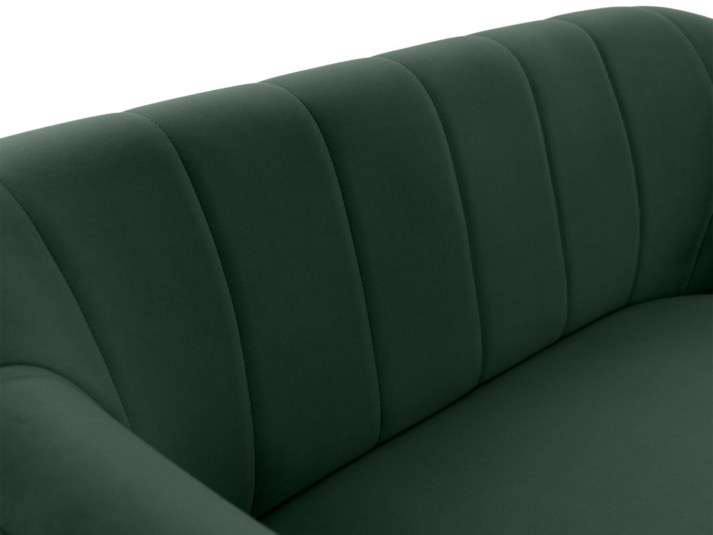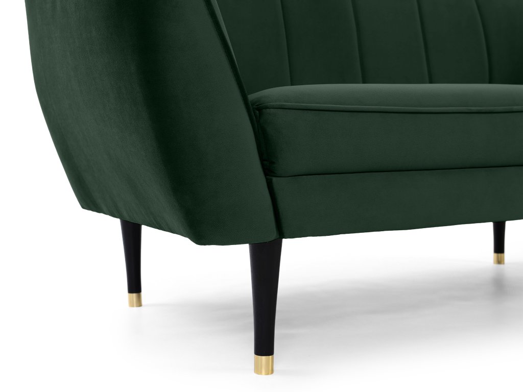 A kétszemélyes DÍVA II kanapé azok közé a bútordarabok közé tartozik, amelyek nem hiányozhatnak egyetlen otthonból sem. A felhasznált minőségi anyagok biztosítják majd a kényelmét. A gyártásakor Velúr Royal kárpitozó szövetet használtak fel, amely nem bolyhosodik. A profilozott háttámlára és a karfára T25, az ülésre T30 keménységű habot használtak fel. A kanapé háttámláját vertikális steppelés is csinosítja. A kanapé fekete színű lábakon áll arany véggel.