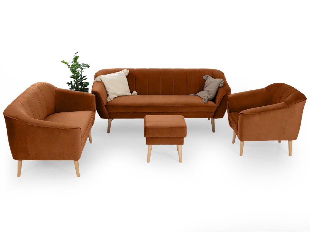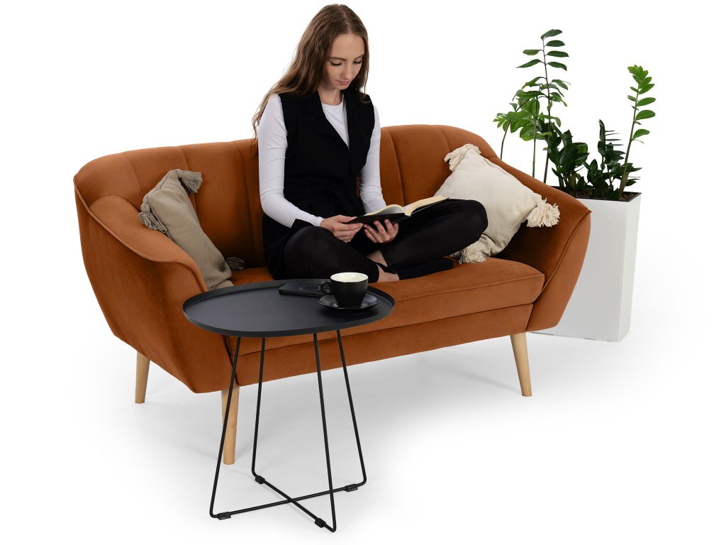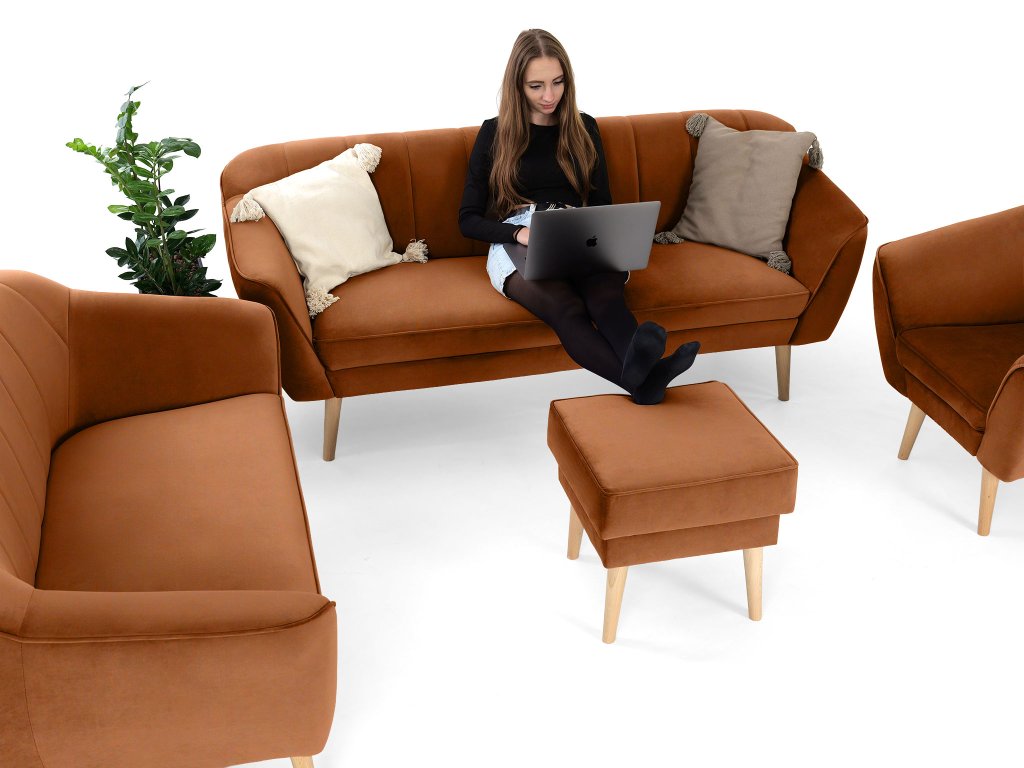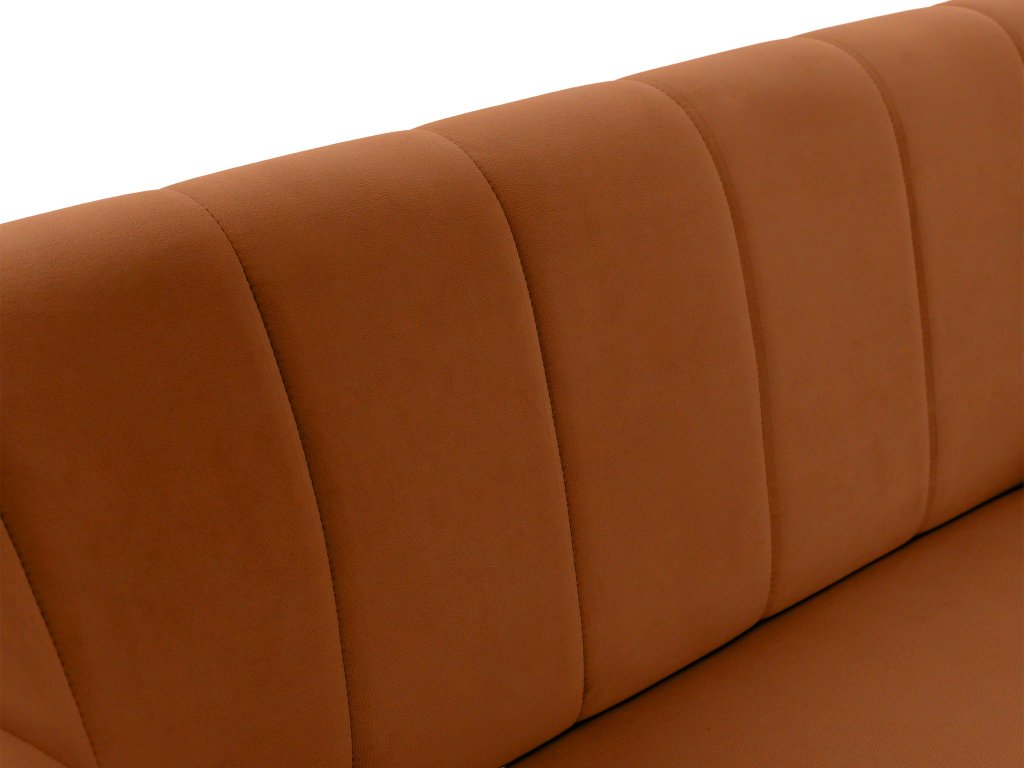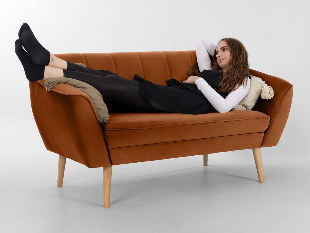 A DÍVA téglavörös szövettel kárpitozott kétszemélyes kanapé tökéletes kényelmet és gyönyörű megjelenést garantál. Bársonyos Riviera szövettel kárpitozott, amely a luxusos velúr szövetek közé tartozik. Ez egy nagyon puha, elegáns és a rávetődő fény hatására enyhén változik a színe. Ellenálló a kikopással és a bolyhozódással szemben is.