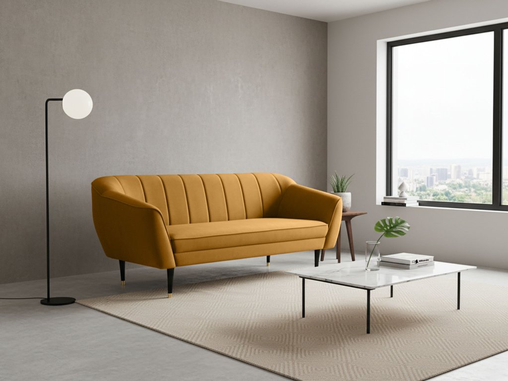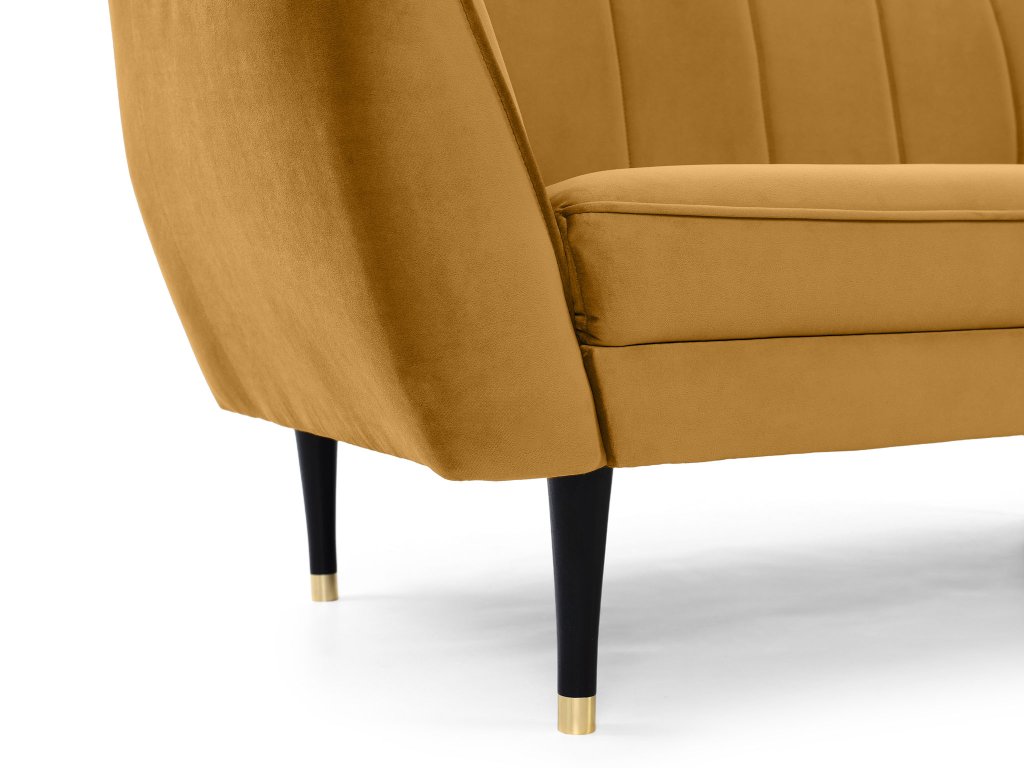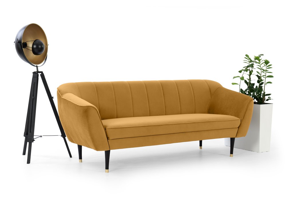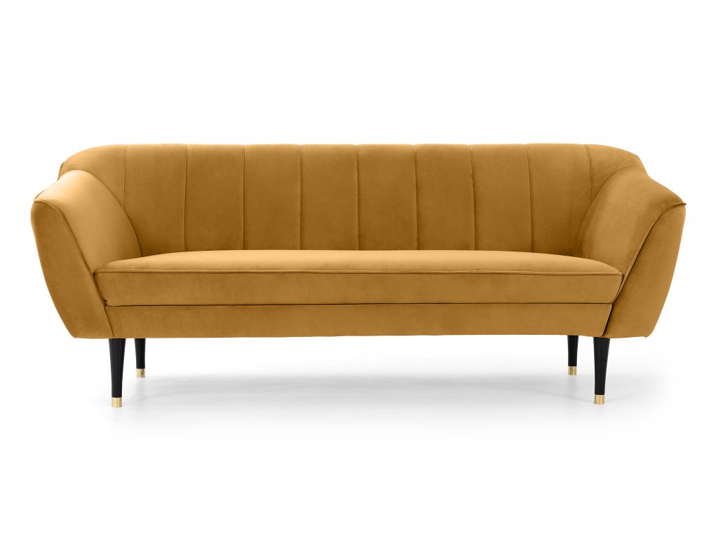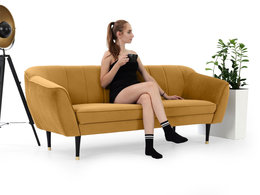 A háromszemélyes kárpitozott DÍVA III bézs kanapé steppelt háttámlával minden otthon dísze. A felhasznált minőségi anyagok biztosítják majd a kényelmét. A gyártásakor Velúr Royal kárpitozó szövetet használtak fel, amely nem bolyhosodik.A profilozott háttámlára és a karfára T25, az ülésre T30 keménységű habot használtak fel. A kanapé háttámláját vertikális steppelés is csinosítja. A kanapé fekete színű lábakon áll arany véggel.
