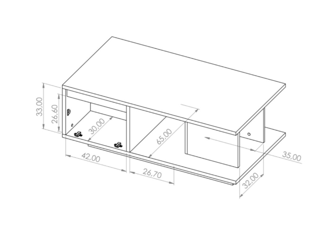 A VERDE dohányzóasztal két beépített szekrénnyel és egy nyitott polccal rendelkezik. Ideális otthoni kiegészítők, könyvek vagy újságok tárolásához.