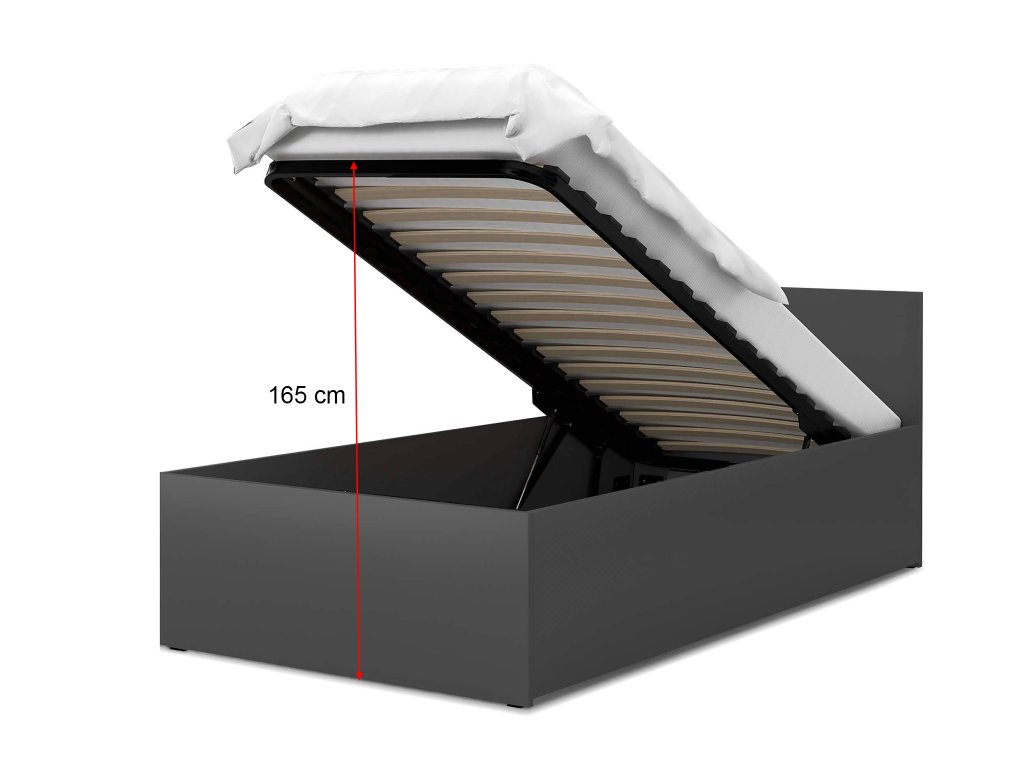 Felnyitható ágyneműtartóval rendelkező DOLLY egyszemélyes ágy felnőtteknek és gyerekeknek szürke színben. Tökéletes választás a gyerekszobába, ifjúsági szobába vagy a vendégszobába. Az ágy tágas tárolóval rendelkezik, amely így elegendő helyet biztosít az ágynemű és egyéb dolgok tárolására. Az ágy szerkezete minőségi 16-18 mm vastag DTD bútorlapból készül, ellenálló és könnyen tisztítható. Az ágy része a minőségi fém ágyrács fa lamellákkal. Az ágyrács felemelését 2 darab gázrugó végzi, amelyek egyenként 400N - 1000N kitolóerejűek lehetnek, az ágy méretétől függően.