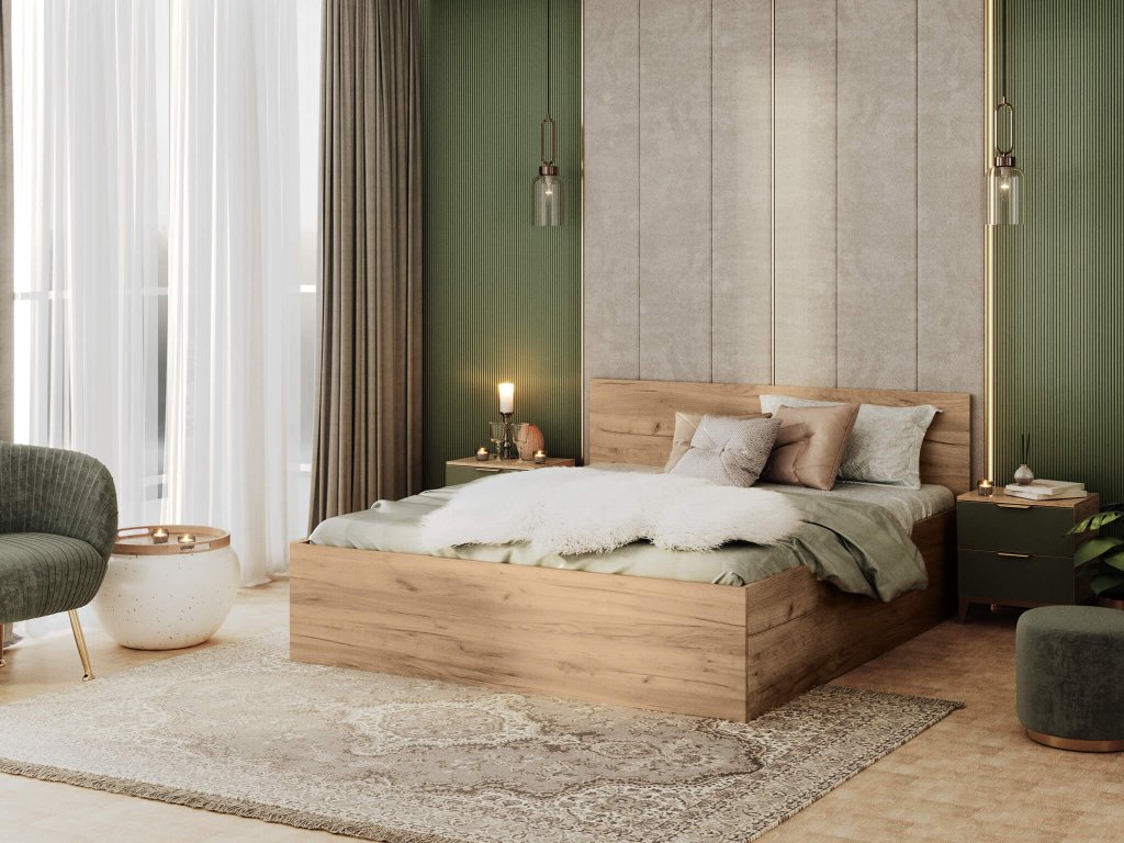 A modern időtálló stílusú DOLLY franciaágy craft tölgy színben ágyneműtartóval