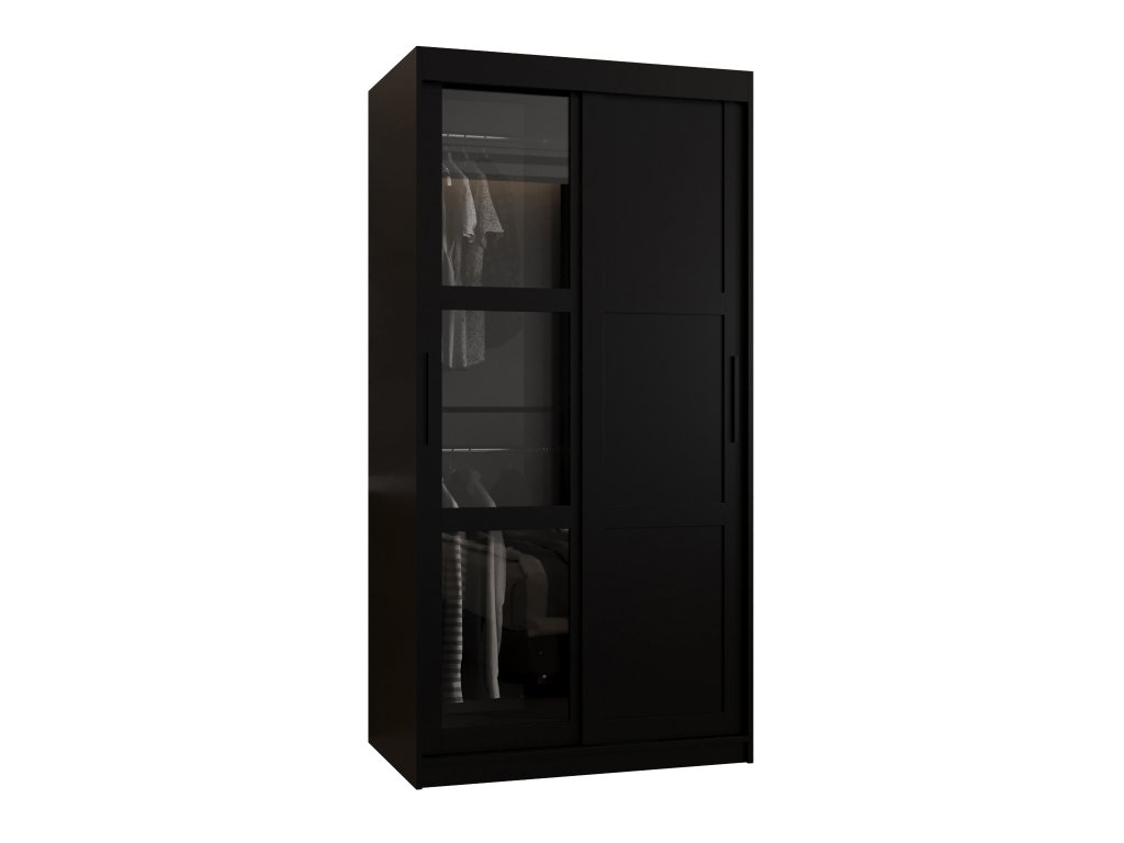 A Dome 3 ruhásszekrény elegáns fekete színben, tolóajtókkal, kifinomult stílust és praktikusságot hoz otthonába. Ez a modern darab időtlen dizájnjával ötvözi az üvegezett és fa ajtókat, ami érdekes kontrasztot teremt, és bármilyen enteriőrben kitűnik.