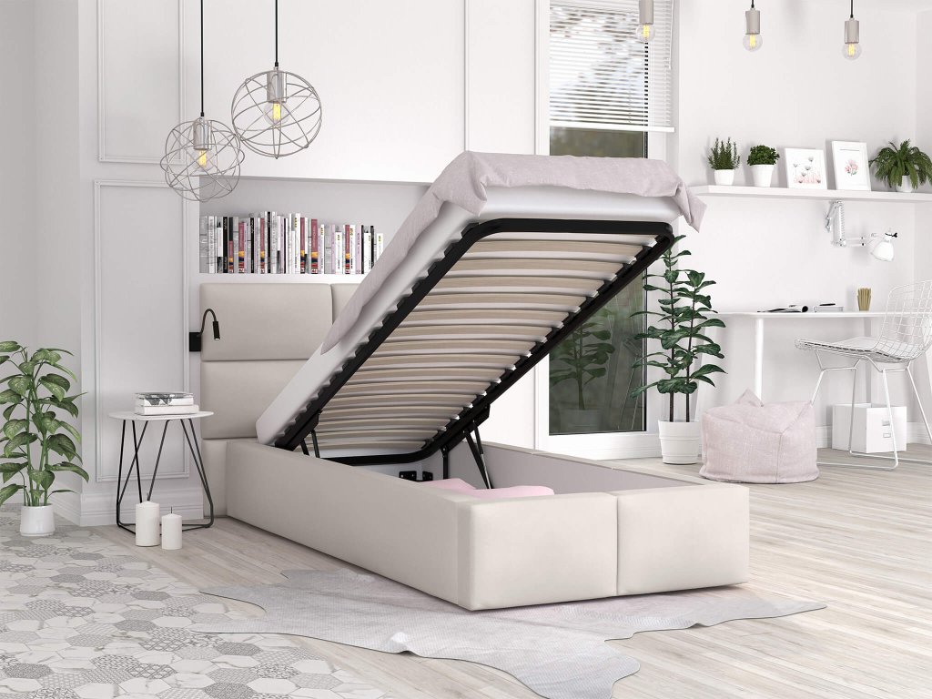 DONY kárpitozott ágy ágyneműtartóval 90x200 - krémszín