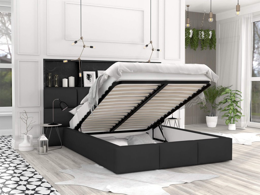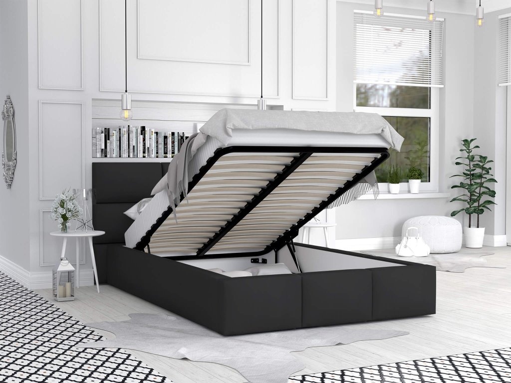 DONY kárpitozott felnyitható ágyneműtartós franciaágy - fekete