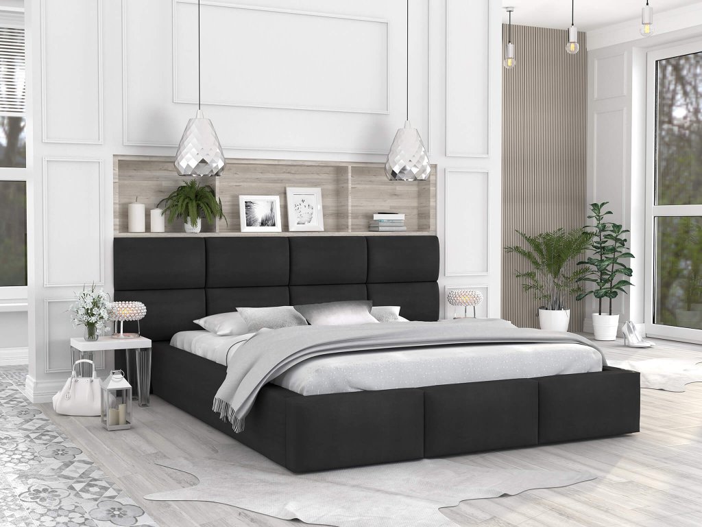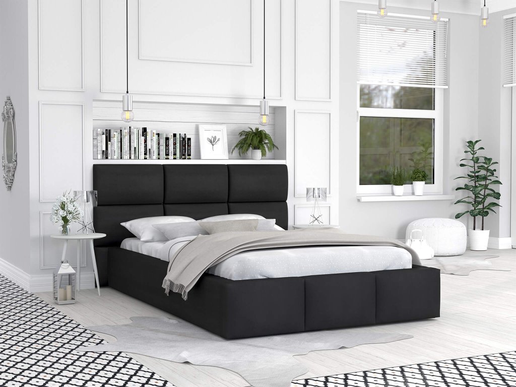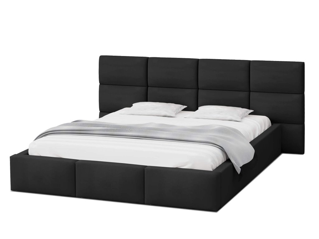 Puha magas háttámlával rendelkező DONY felnyitható ágyneműtartós fekete franciaágy, amely több méretben kapható: 140x200 / 160x200 / 180x200. Az ágy modern és igazán praktikus is. Értékelni fogja a puha kárpitozott fejtámlát, ha szeret az ágyban olvasni, filmeket vagy sorozatokat nézni. Az ágy gyártásánál kiváló minőségű és erős anyagokat használtak fel. Az ágy teljes egészében kellemes Trinity szövettel van kárpitozva, így a lábát nem fogja az ágy kemény deszkája megsérteni felkelésnél. A tágas ágyneműtartóhoz az ágyrács felnyitásával tud hozzáférni. Itt tárolhatja az ágyneműt, így az mindig kéznél lesz. A felnyitható ágyrács emelő mechanizmusát két gázrugó támogatja. Az ágy egyes elemei speciális, nagy átmérőjű csavarokkal vannak összeszerelve, amelynek köszönhetően az ágyat stabil és ellenálló lesz.Az alkalmazott erősített kötés biztosítja, hogy az ágy részei jól illeszkedjenek egymáshoz.