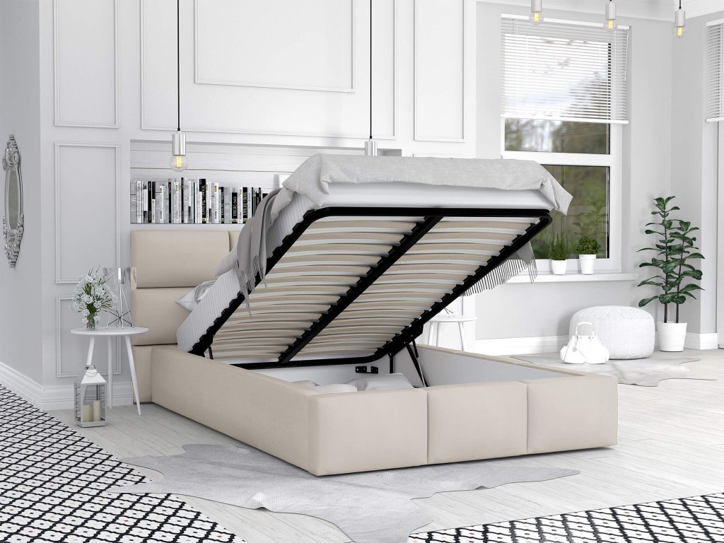DONY kárpitozott felnyitható ágyneműtartós franciaágy - krémszín