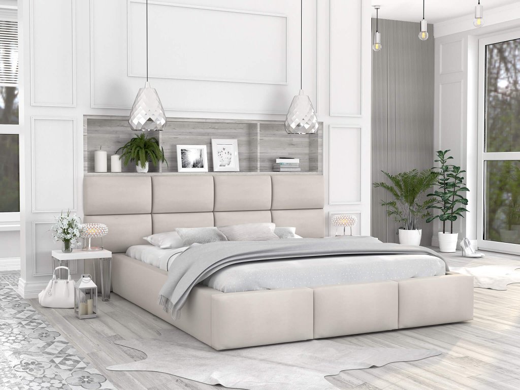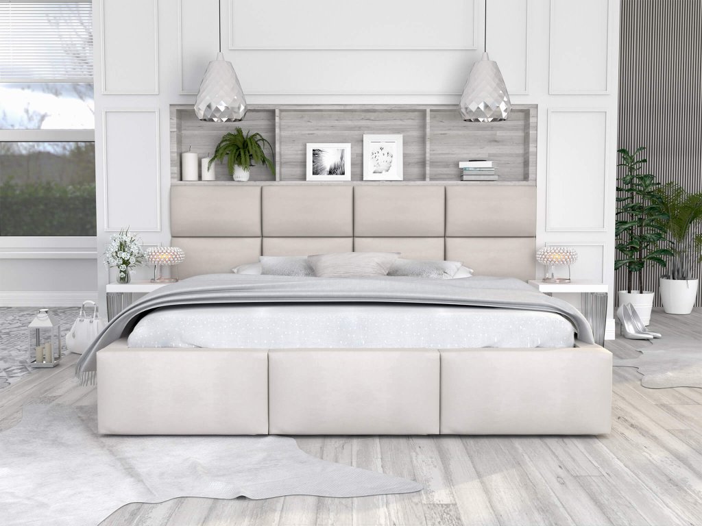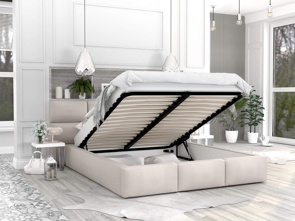 Három méretben kapható (140x200, 160x200, 180x200) DONY felnyitható ágyneműtartós krémszínű franciaágy lamellás ágyráccsal, amely minden hálószobában megtalálja a helyét. Az ágy puha és magas kárpitozott háttámlával rendelkezik. Az ágy modern és igazán praktikus is. Értékelni fogja a puha kárpitozott fejtámlát, ha szeret az ágyban olvasni, filmeket vagy sorozatokat nézni. Az ágy gyártásánál kiváló minőségű és erős anyagokat használtak fel. Az ágy teljes egészében kellemes Trinity szövettel van kárpitozva, így a lábát nem fogja az ágy kemény deszkája megsérteni felkelésnél. A tágas ágyneműtartóhoz az ágyrács felnyitásával tud hozzáférni. Itt tárolhatja az ágyneműt, így az mindig kéznél lesz. A felnyitható ágyrács emelő mechanizmusát két gázrugó támogatja. Az ágy egyes elemei speciális, nagy átmérőjű csavarokkal vannak összeszerelve, amelynek köszönhetően az ágyat stabil és ellenálló lesz.Az alkalmazott erősített kötés biztosítja, hogy az ágy részei jól illeszkedjenek egymáshoz.