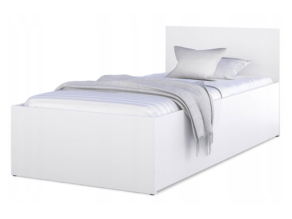 DORIAN egyszemélyes fehér ágy, amely egy igazán egyszerű, de praktikus ágy.  Az ágy a minimalista stílusának köszönhetően tökéletes minden gyerekszobába, kamaszok szobájába vagy akár a vendégszobába is. Az ágy minőségi 16-18 mm vastag DTD bútorlapból készül, amely nagyon ellenálló és könnyen tisztítható. Az ágy részét képezi a minőségi szilárd fából készült ágyrács.