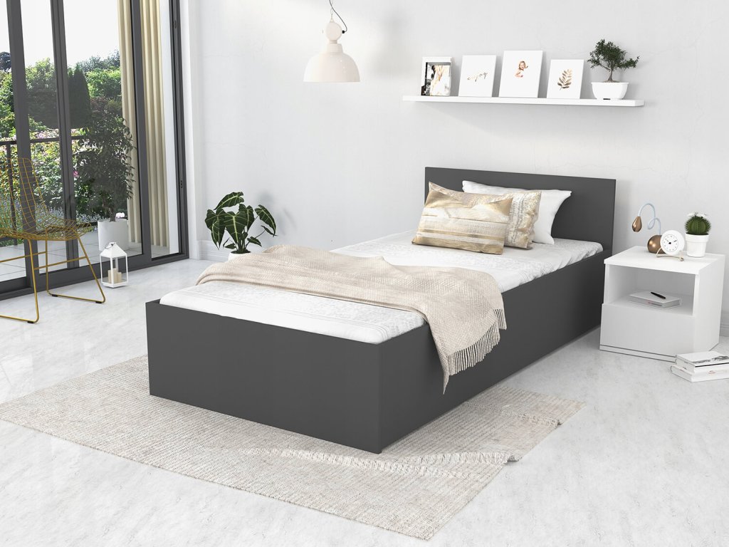 Gyönyörű grafitszürke színben készült DORIAN egyszemélyes ágy, amely egy igazán egyszerű, de praktikus ágy.  Az ágy a minimalista stílusának köszönhetően tökéletes minden gyerekszobába, kamaszok szobájába vagy akár a vendégszobába is. Az ágy minőségi 16-18 mm vastag DTD bútorlapból készül, amely nagyon ellenálló és könnyen tisztítható. Az ágy részét képezi a minőségi szilárd fából készült ágyrács.