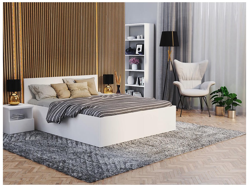 DORIAN modern fehér franciaágy, amely első látásra elbűvöli majd az egyszerű kinézetével. Az ágy minőségi 16-18 mm vastag DTD bútorlapból készül, amely nagyon ellenálló és könnyen tisztítható. Az ágy részét képezi a minőségi szilárd fából készült ágyrács. Az ágy a minimalista stílusának köszönhetően minden hálószobába tökéletes választás.
