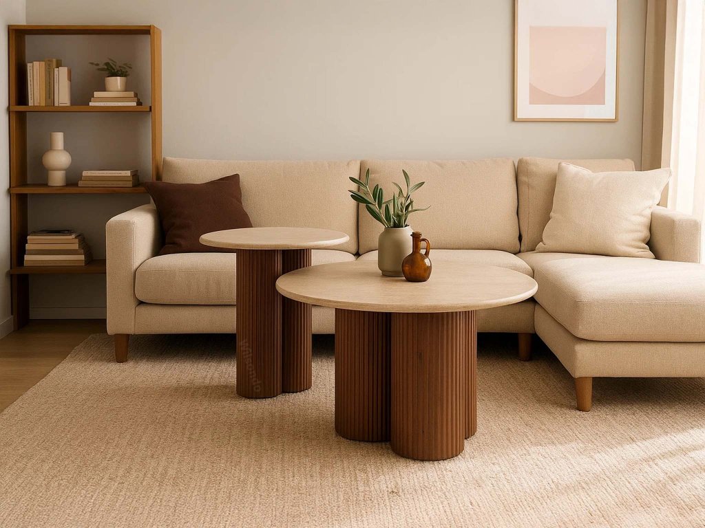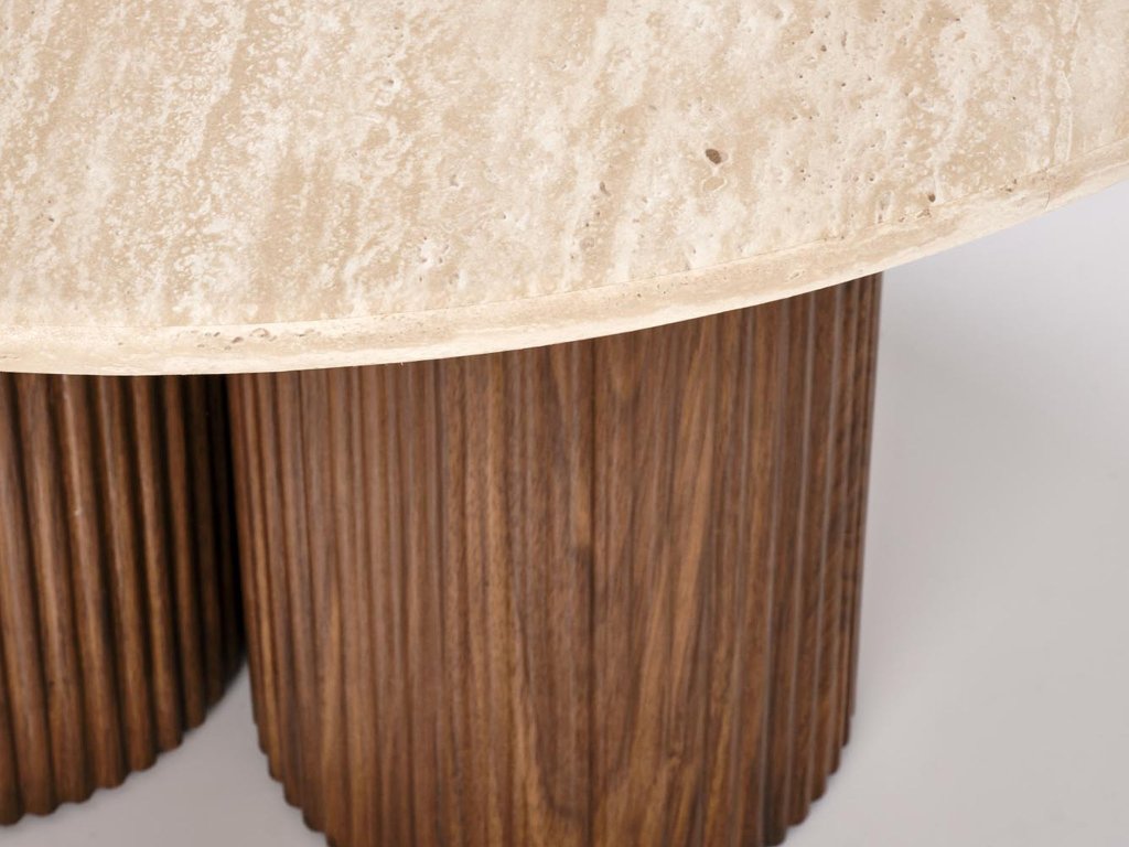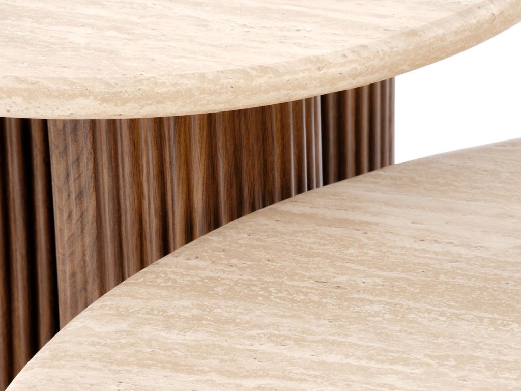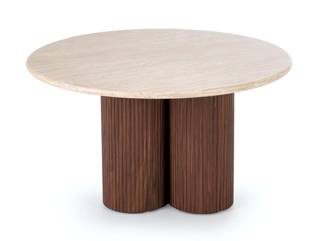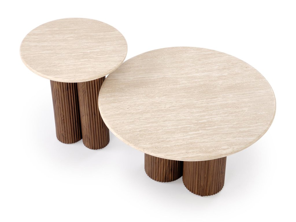Dorotea – kerek dohányzóasztal travertínu és dió színben